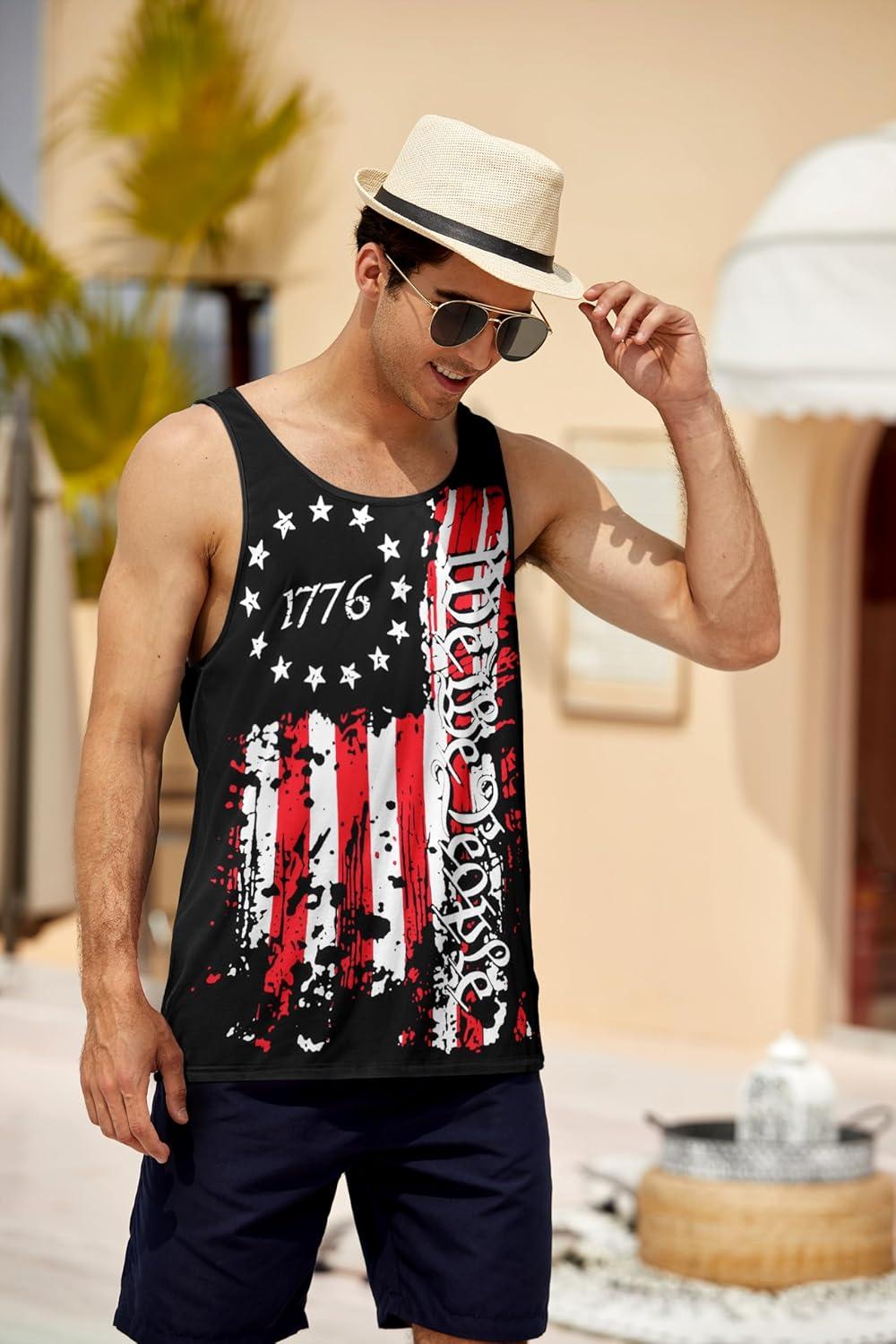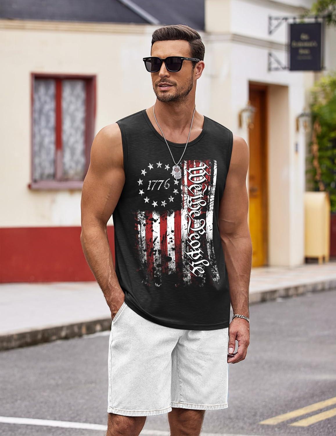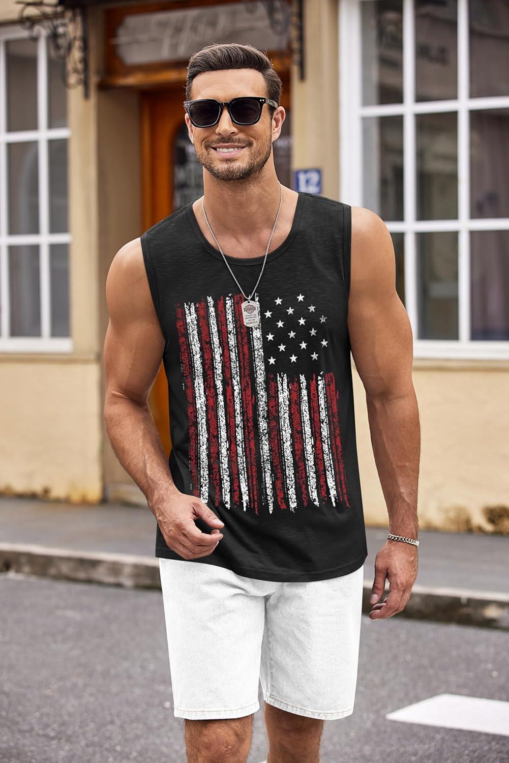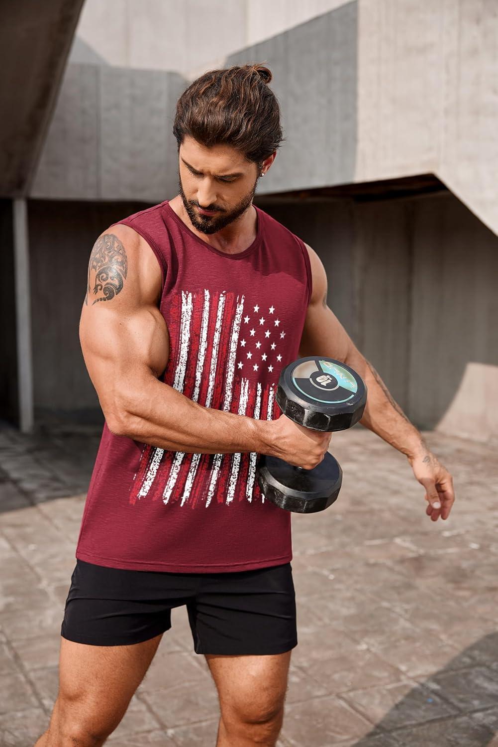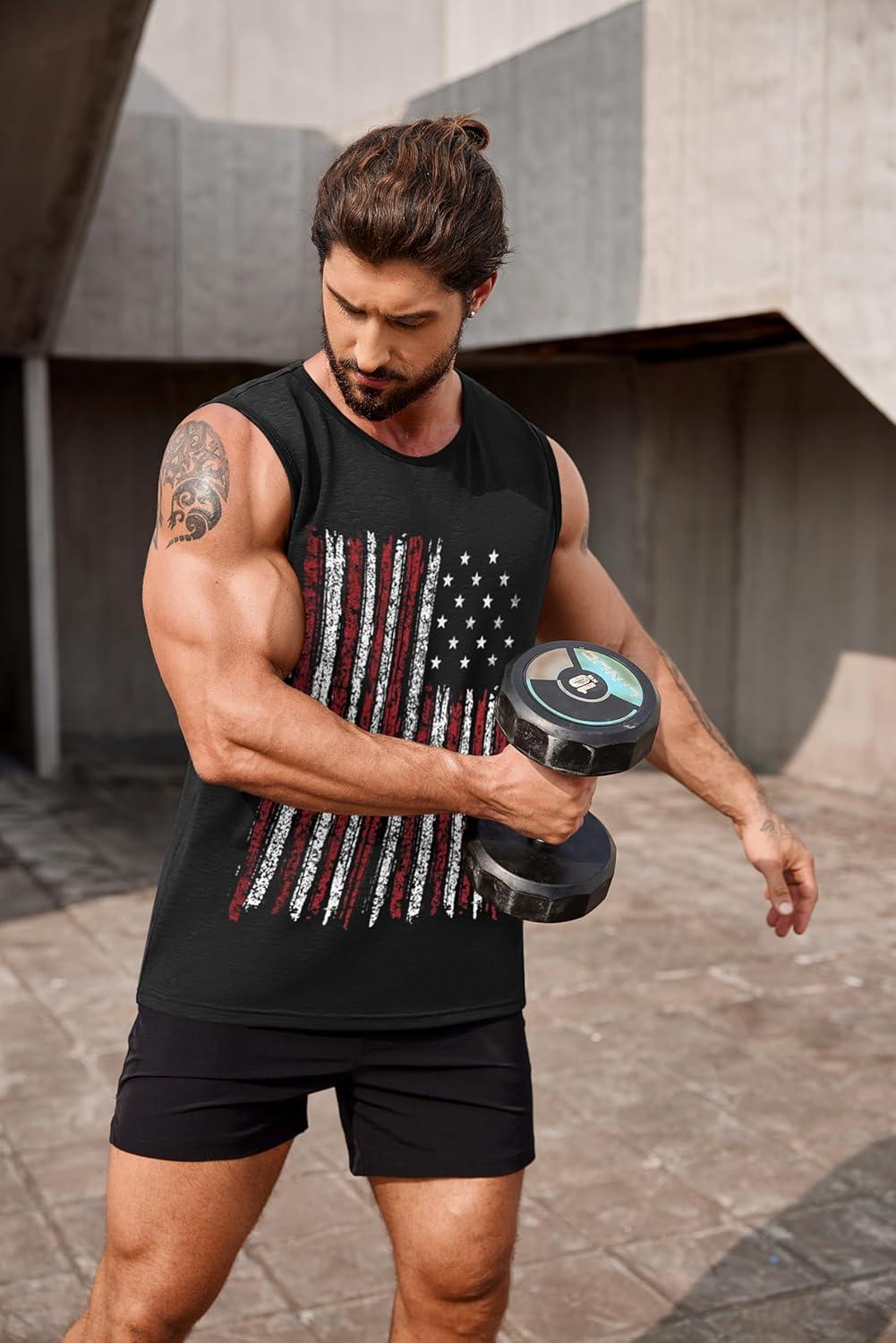 COOFANDY Men’s Casual Tank Top Sleeveless Henley Shirts Muscle Fit T Shirt(01-usa Flag 01(1pcs))