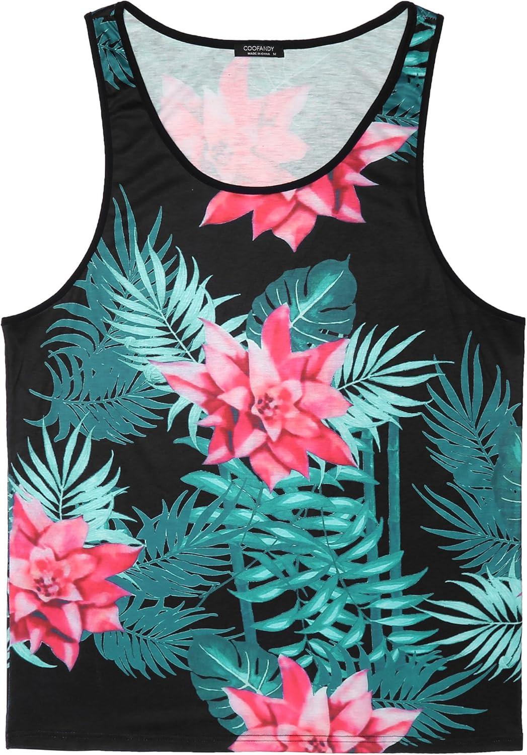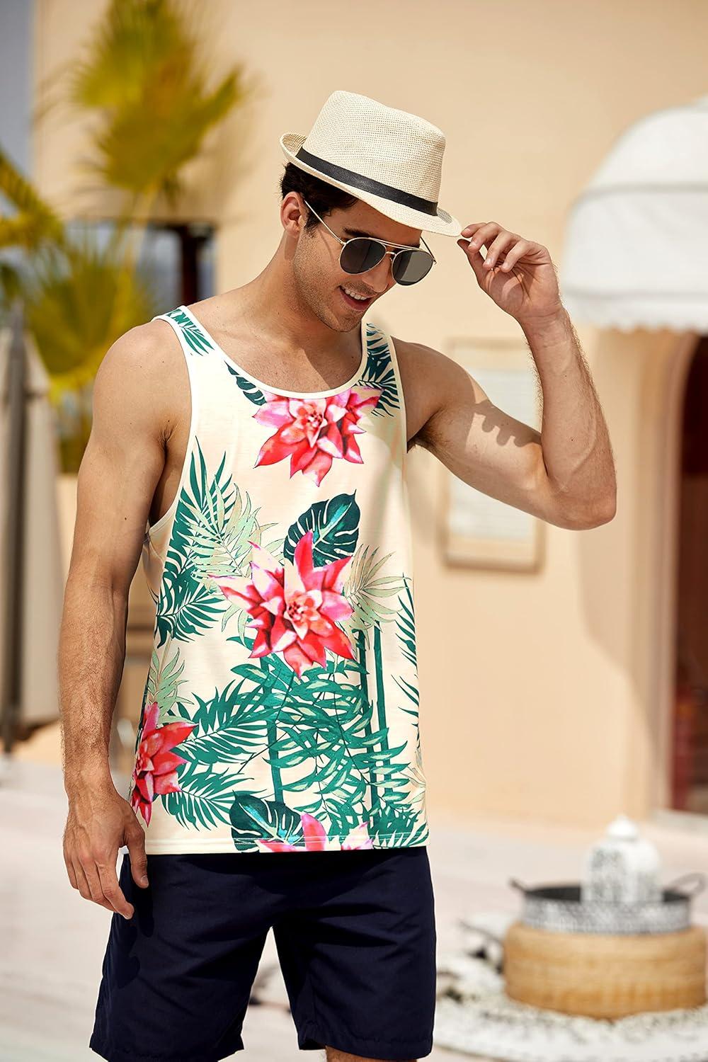 COOFANDY Mens Tank Tops Beach Summer Sleeveless Graphic T Shirts Palm Tree Vacation Quick Dry Muscle Tank(Black-coconut)