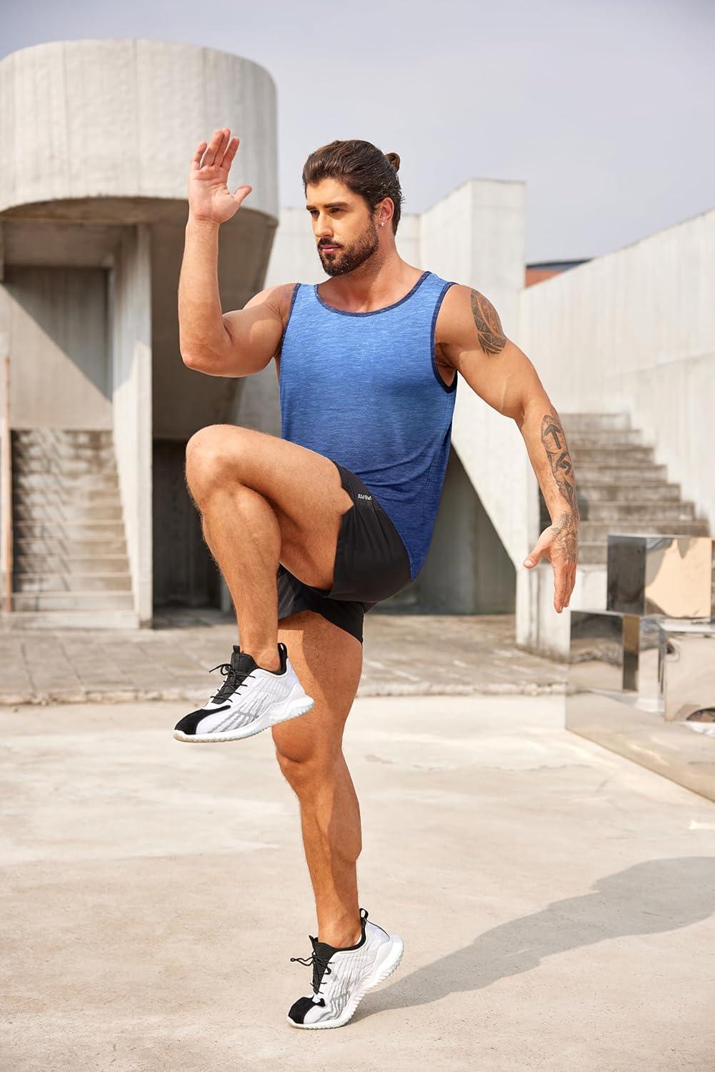 COOFANDY Men’s Workout Tank Tops 1/2 Pack Dry Fit Sleeveless Muscle Gym Shirts Stretch Bodybuilding Tee(Navy+light Blue)