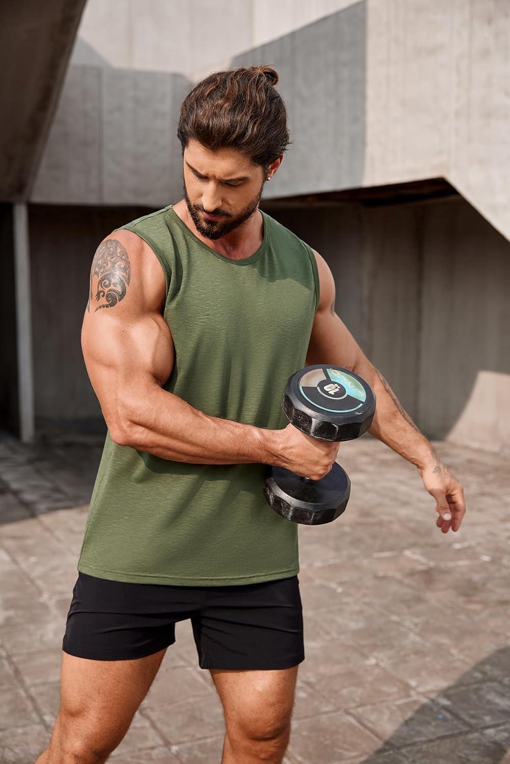 COOFANDY Mens Tank Tops Summer Beach Sleeveless Muscle Shirts Casual Knit Tanks Workout Gym Tee(Army Green)