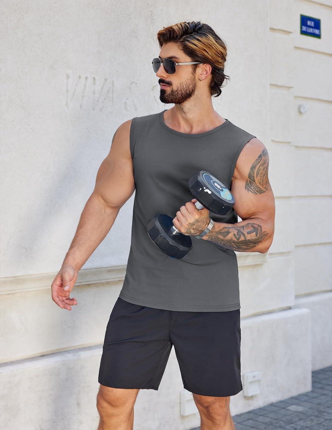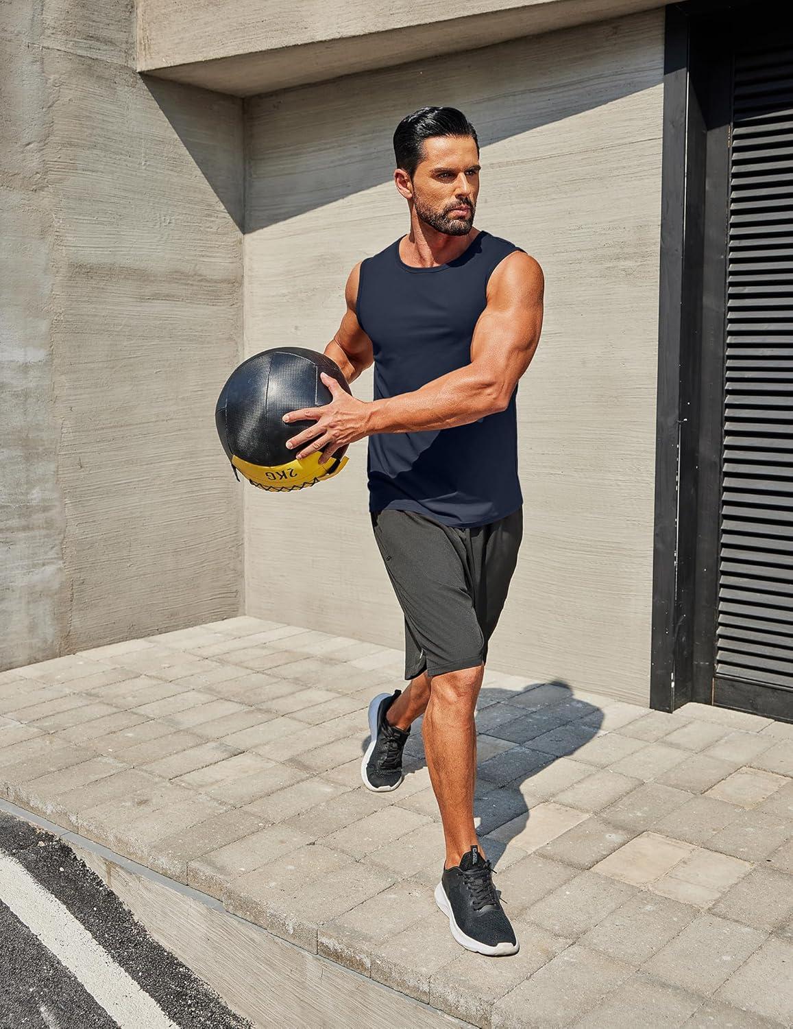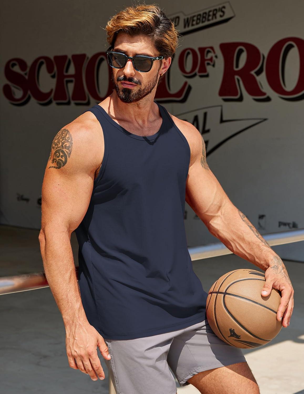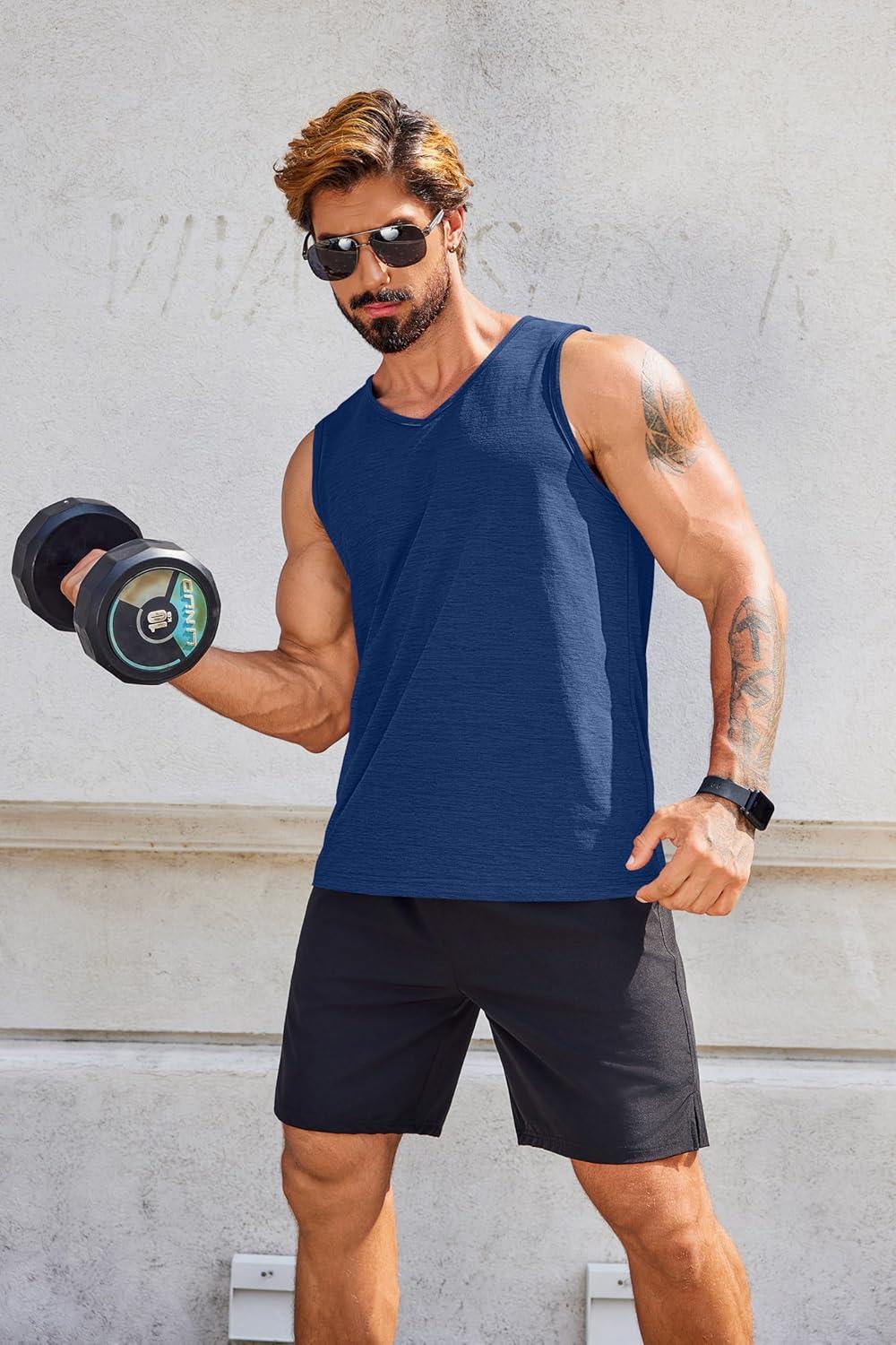 COOFANDY Men’s Workout Tank Top 3 Pack Quck Dry Sleeveless Gym Muscle Shirts Summer Swim Beach Tops(Black/Dark Blue/Light Gray)