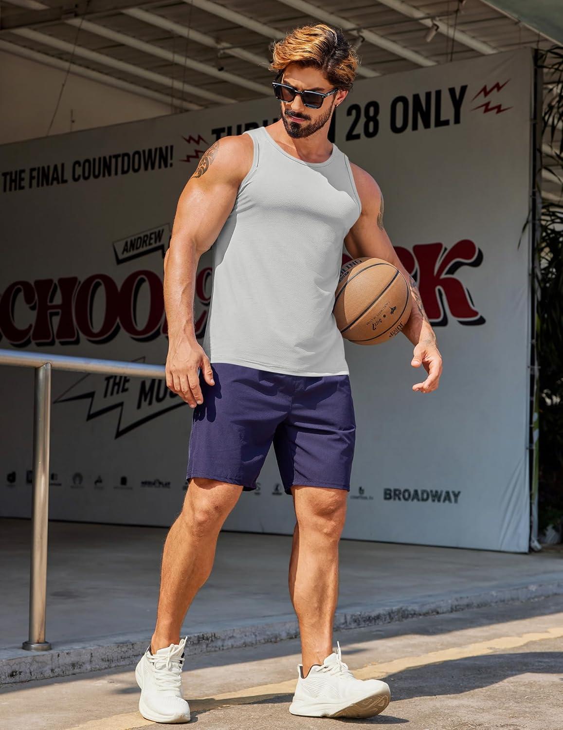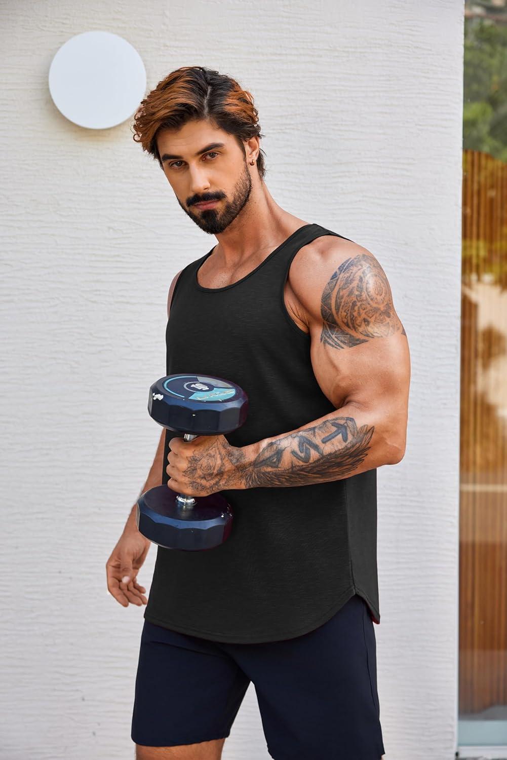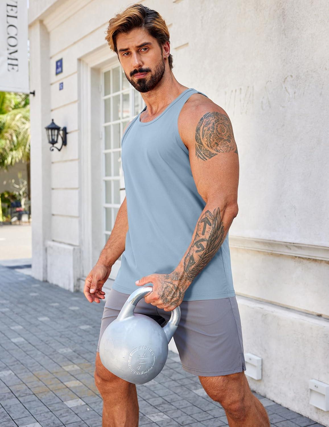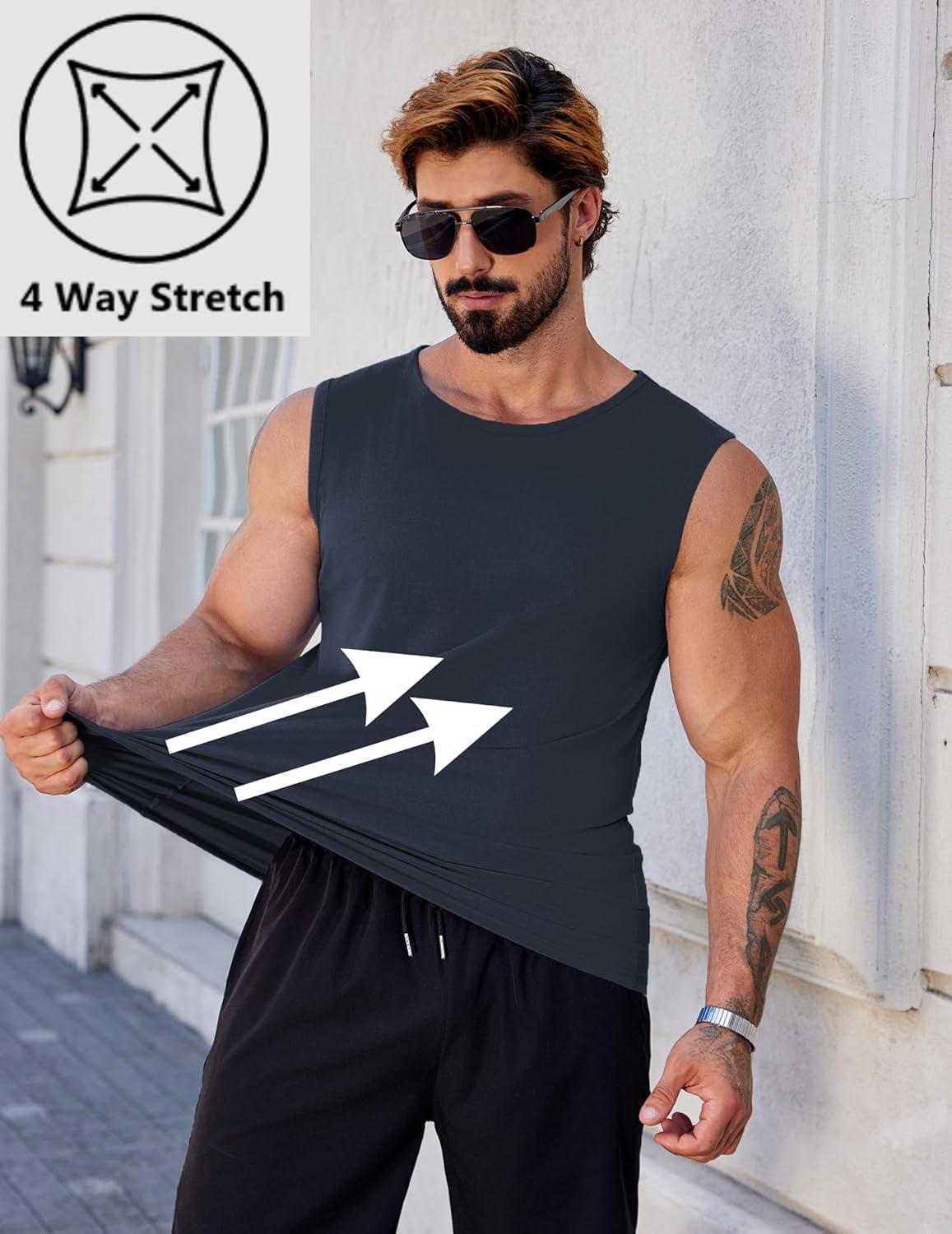COOFANDY Men’s Workout Tank Top 3 Pack Quck Dry Sleeveless Gym Muscle Shirts Summer Swim Beach Tops(Black/Dark Blue/Light Gray)