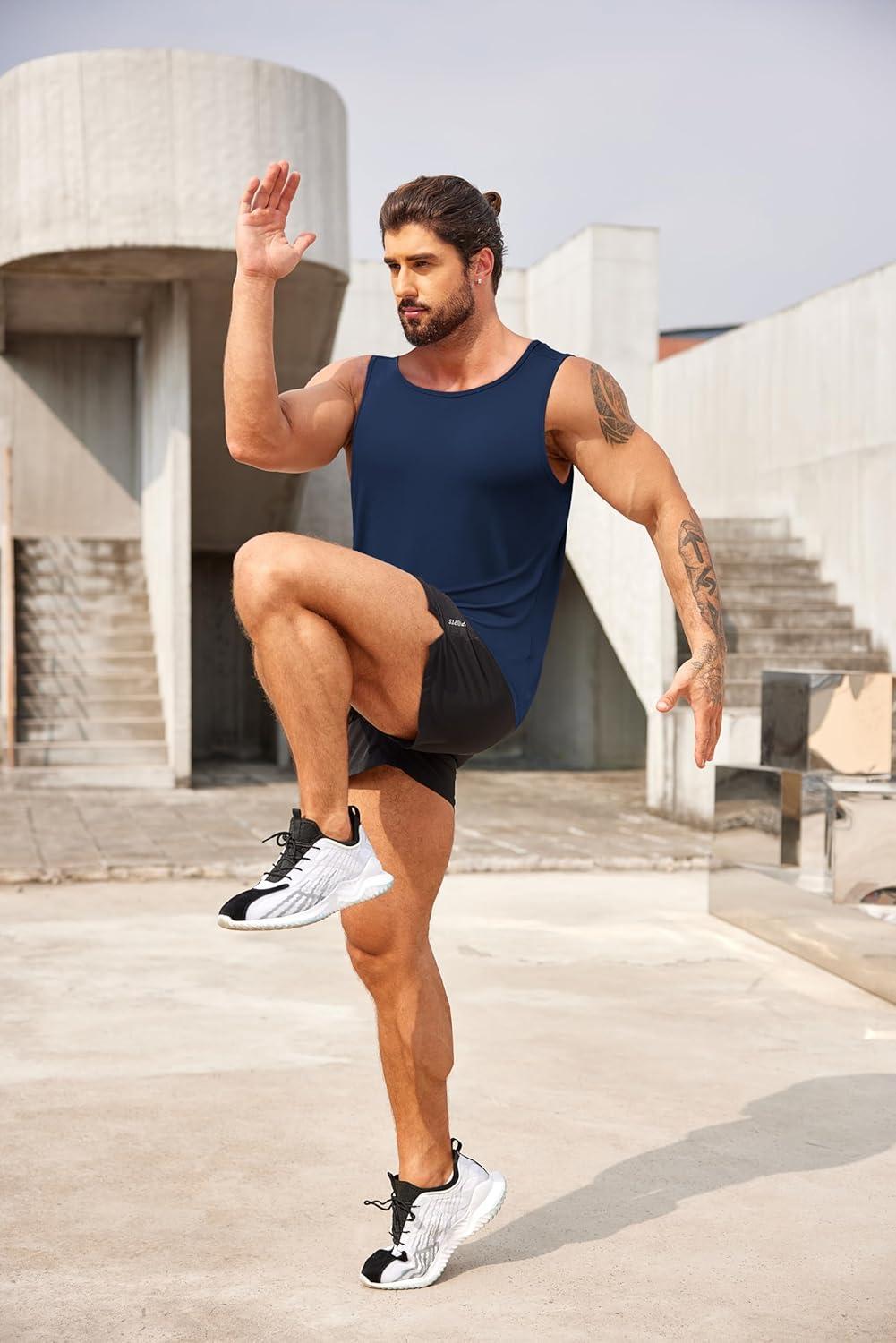 COOFANDY Men’s Workout Tank Tops 1/2 Pack Dry Fit Sleeveless Muscle Gym Shirts Stretch Bodybuilding Tee(Navy)