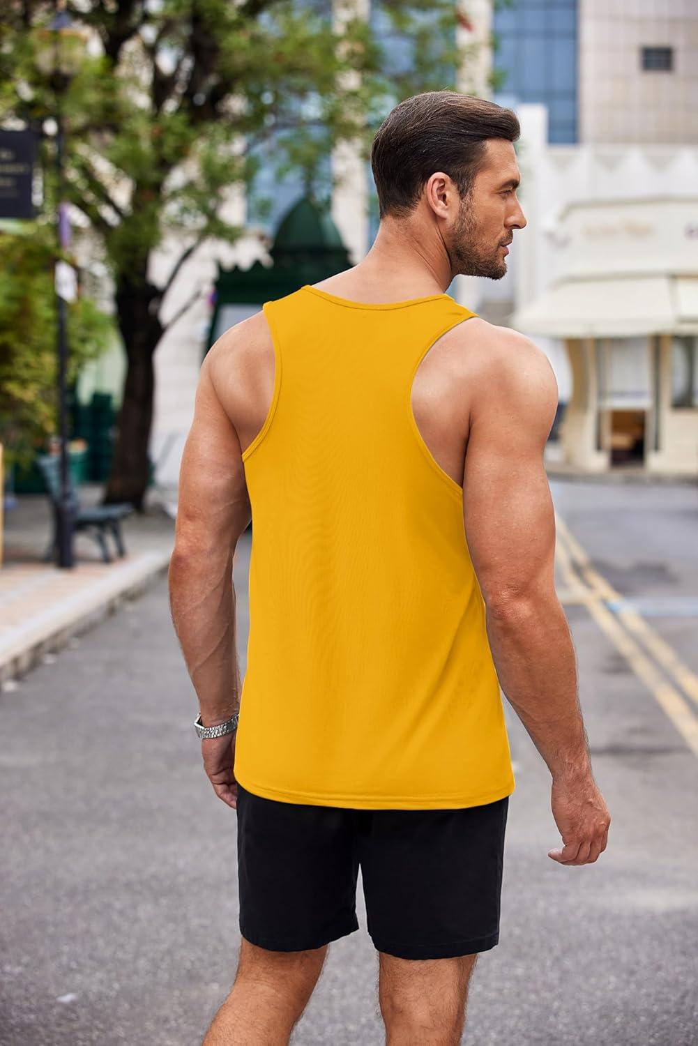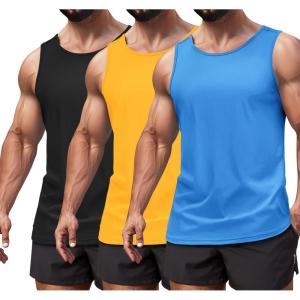 COOFANDY Men’s Workout Tank Top 3 Pack Quck Dry Sleeveless Gym Muscle Shirts Summer Swim Beach Tops(Black/Yellow/Blue)