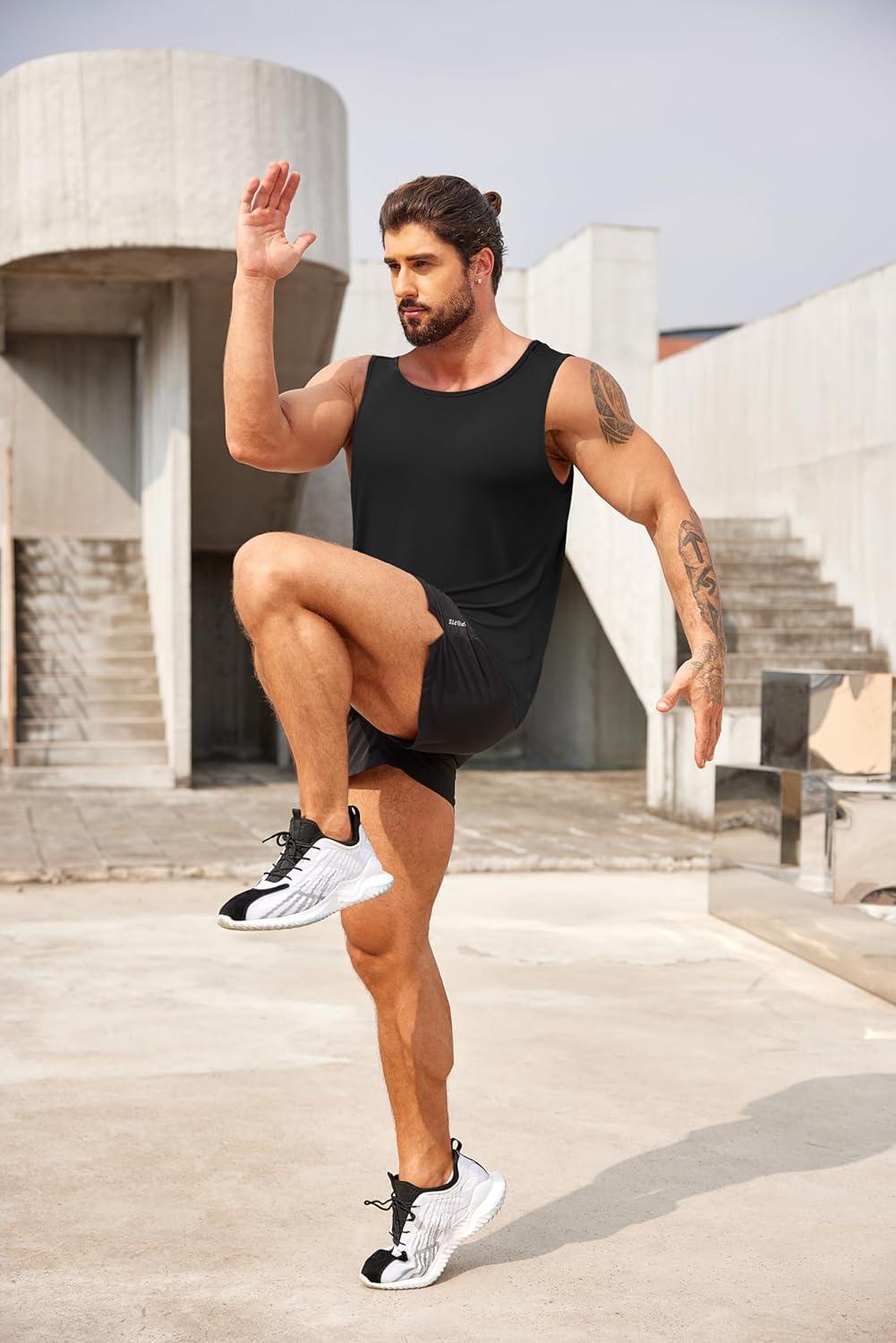 COOFANDY Men’s Workout Tank Tops 1/2 Pack Dry Fit Sleeveless Muscle Gym Shirts Stretch Bodybuilding Tee(Black+white)