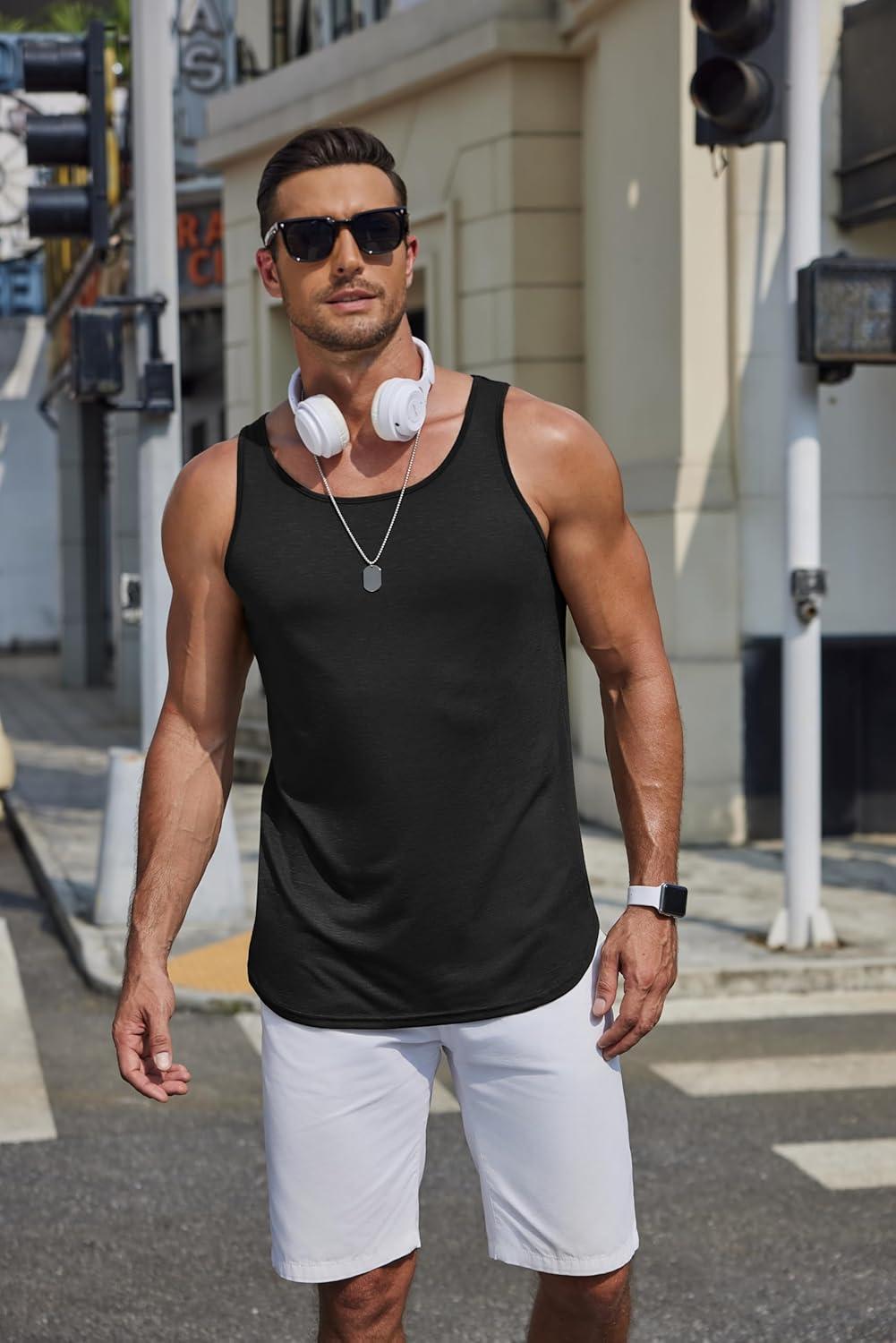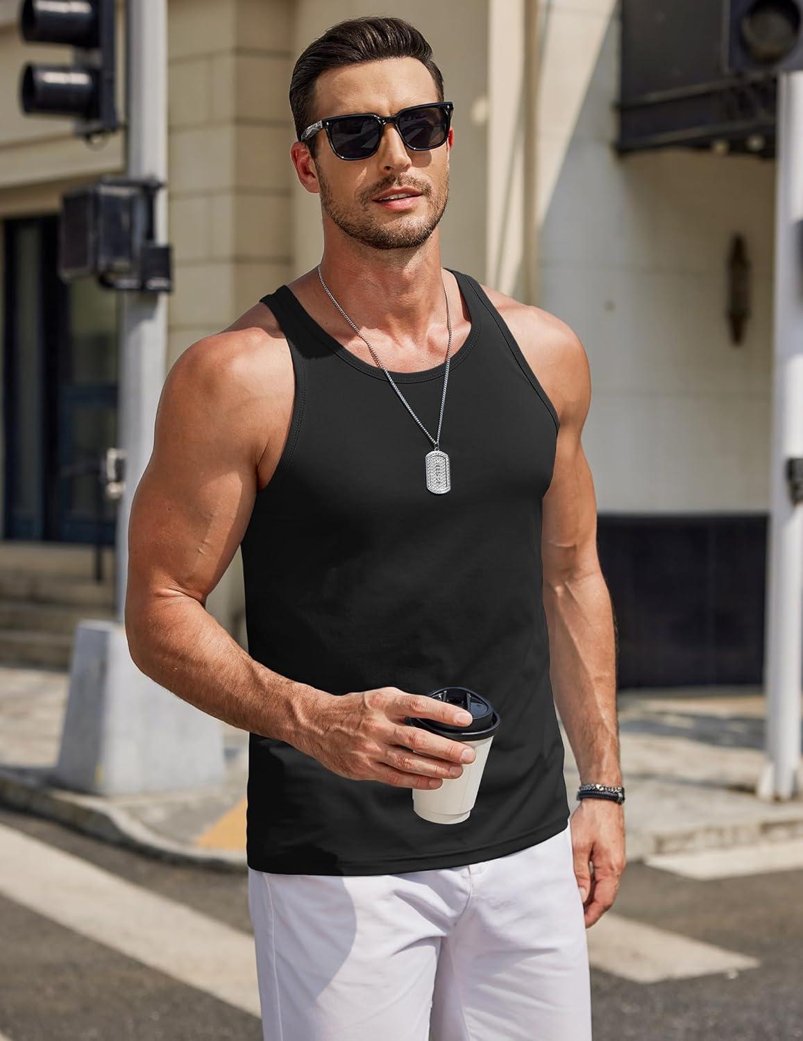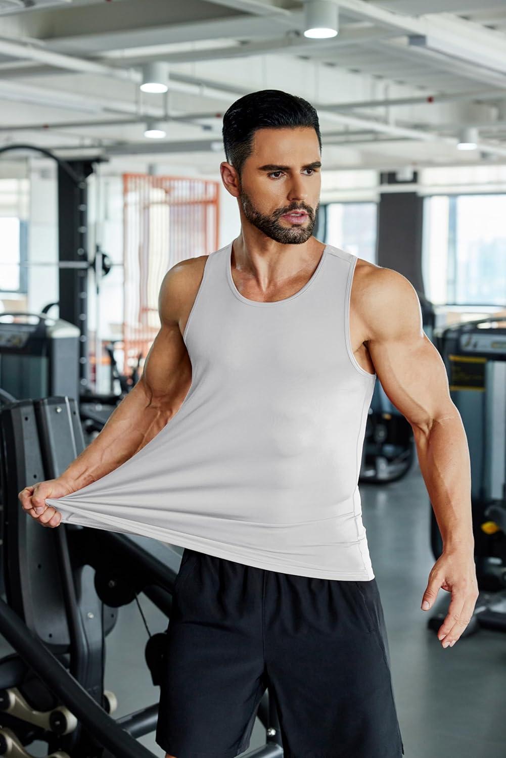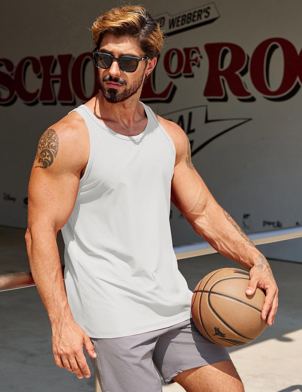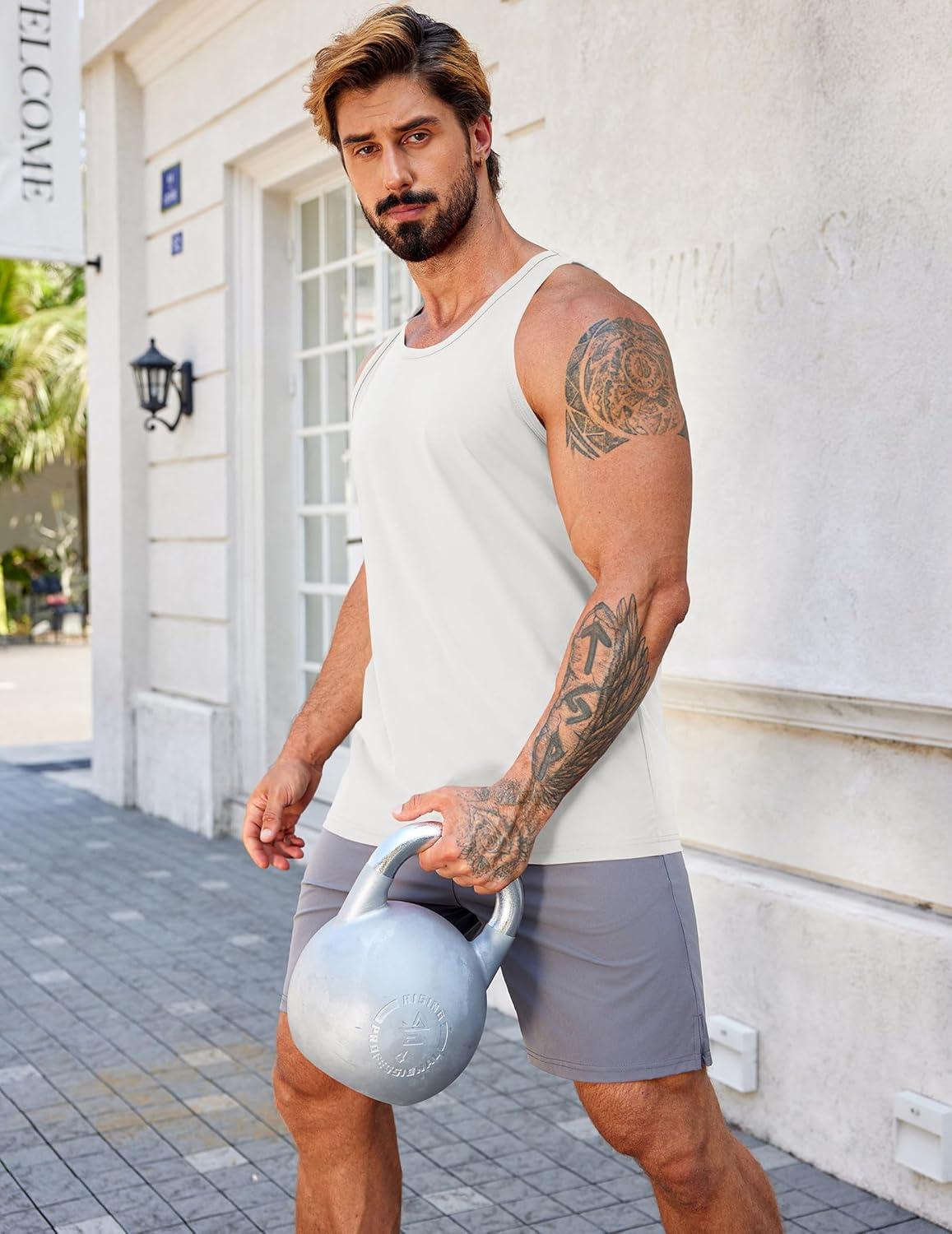 COOFANDY Men’s Workout Tank Top 3 Pack Quck Dry Sleeveless Gym Muscle Shirts Summer Swim Beach Tops(Black/White/Light Gray)