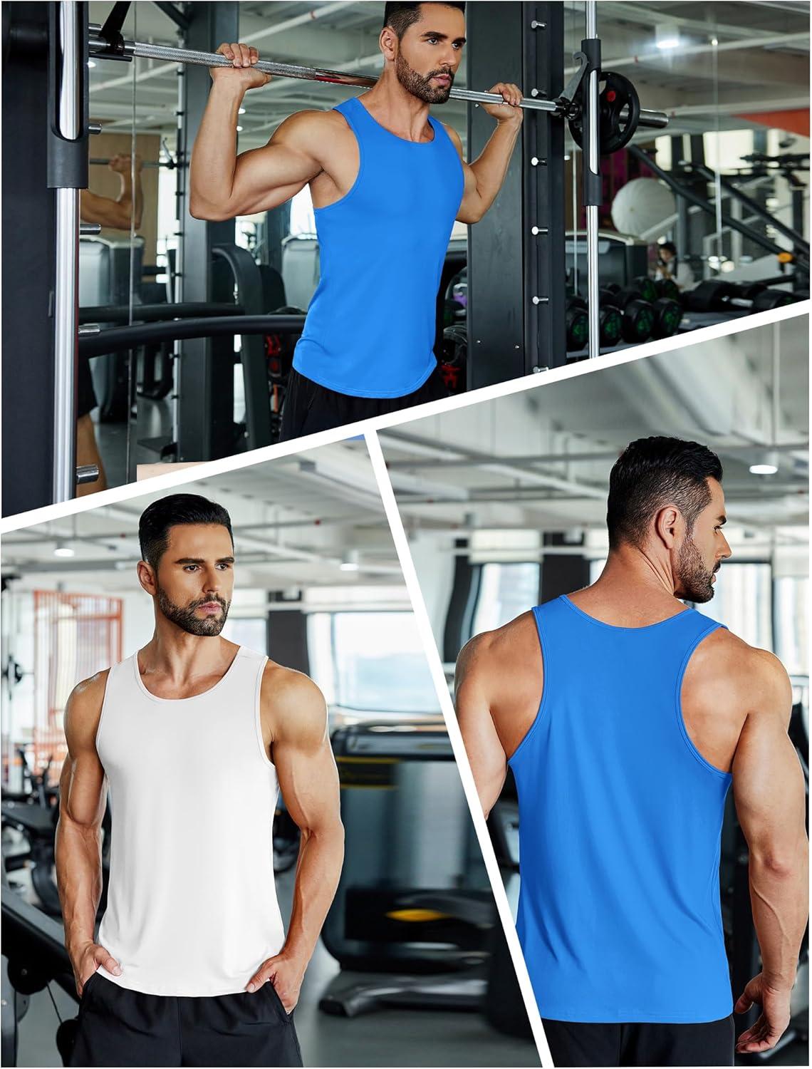 COOFANDY Men’s Workout Tank Top 3 Pack Quck Dry Sleeveless Gym Muscle Shirts Summer Swim Beach Tops(White/Grey/Blue)