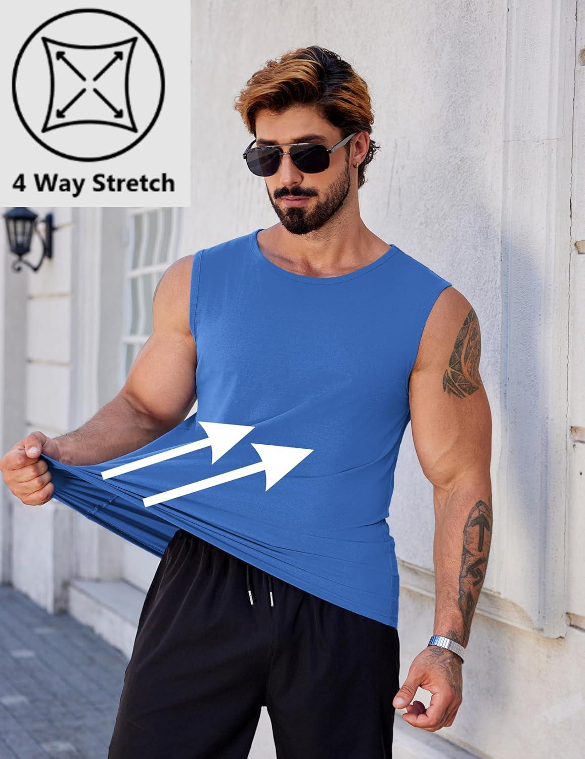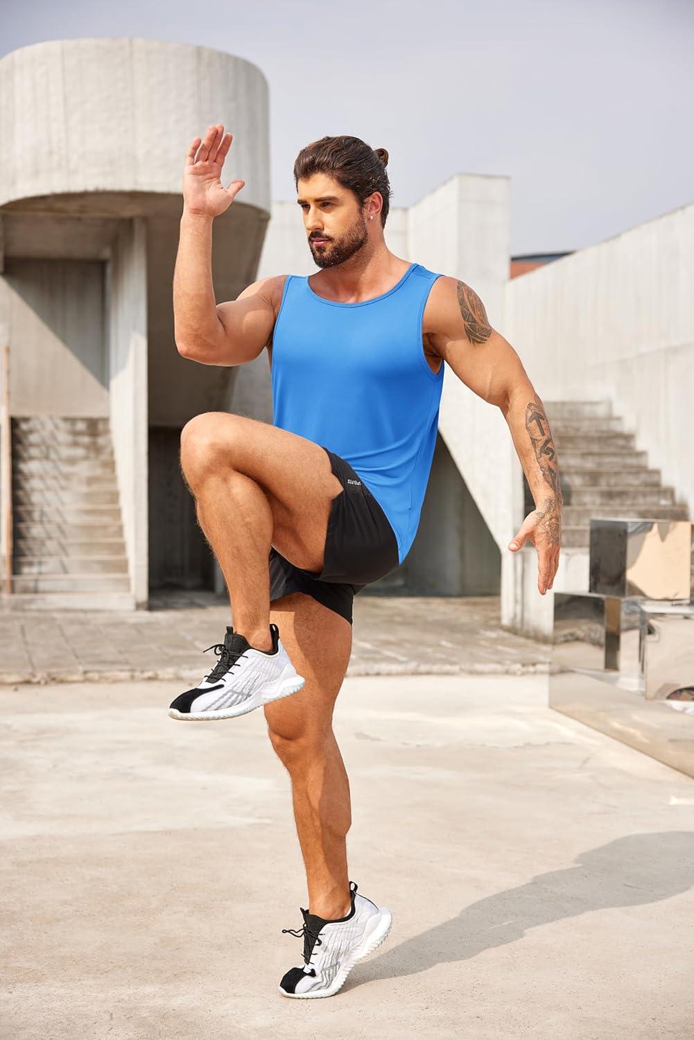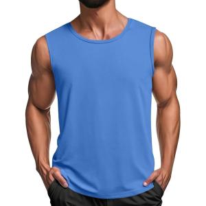 COOFANDY Men’s Workout Tank Tops 1/2 Pack Dry Fit Sleeveless Muscle Gym Shirts Stretch Bodybuilding Tee(Blue)