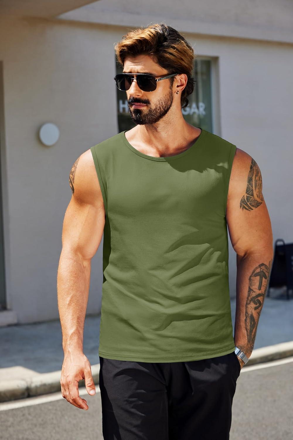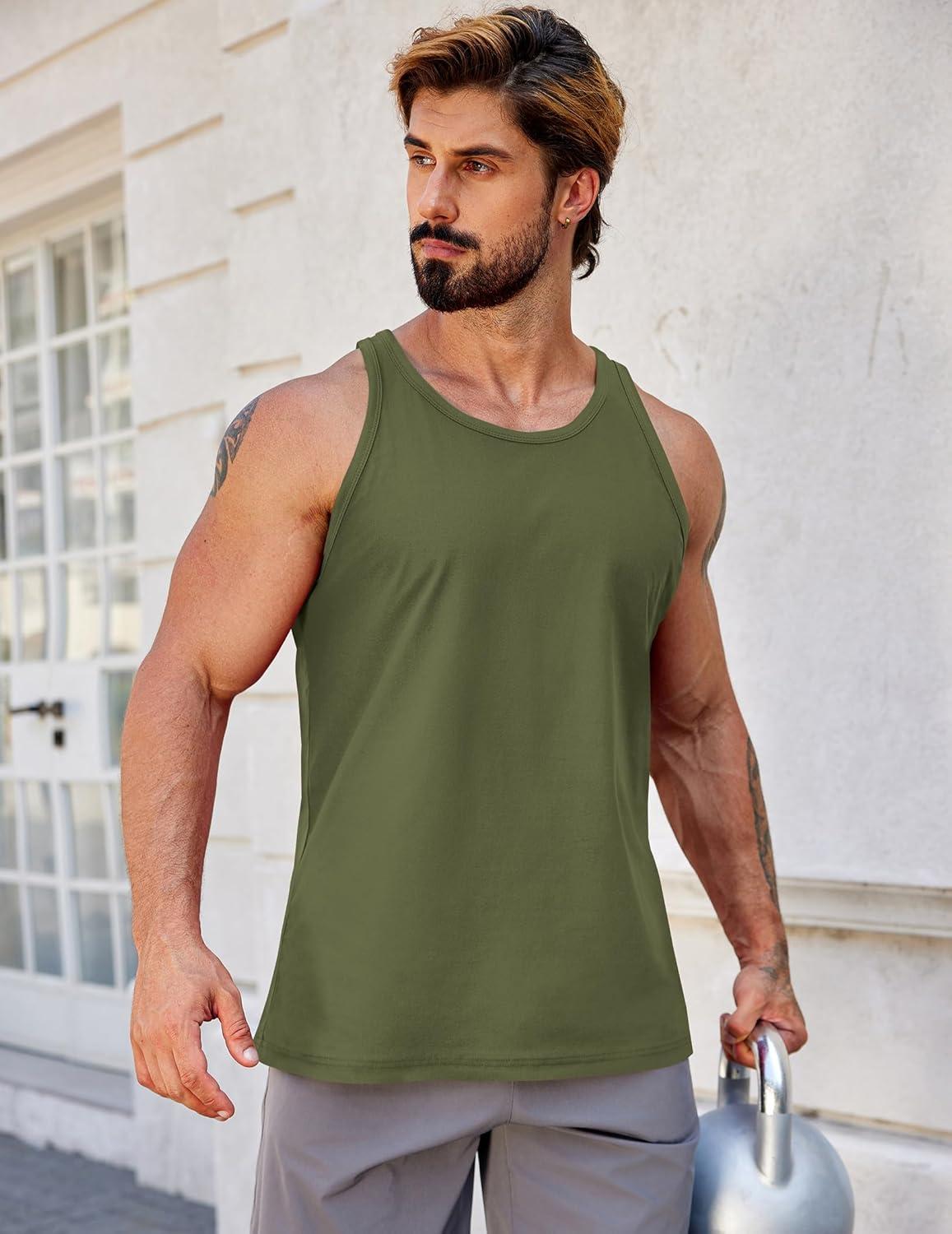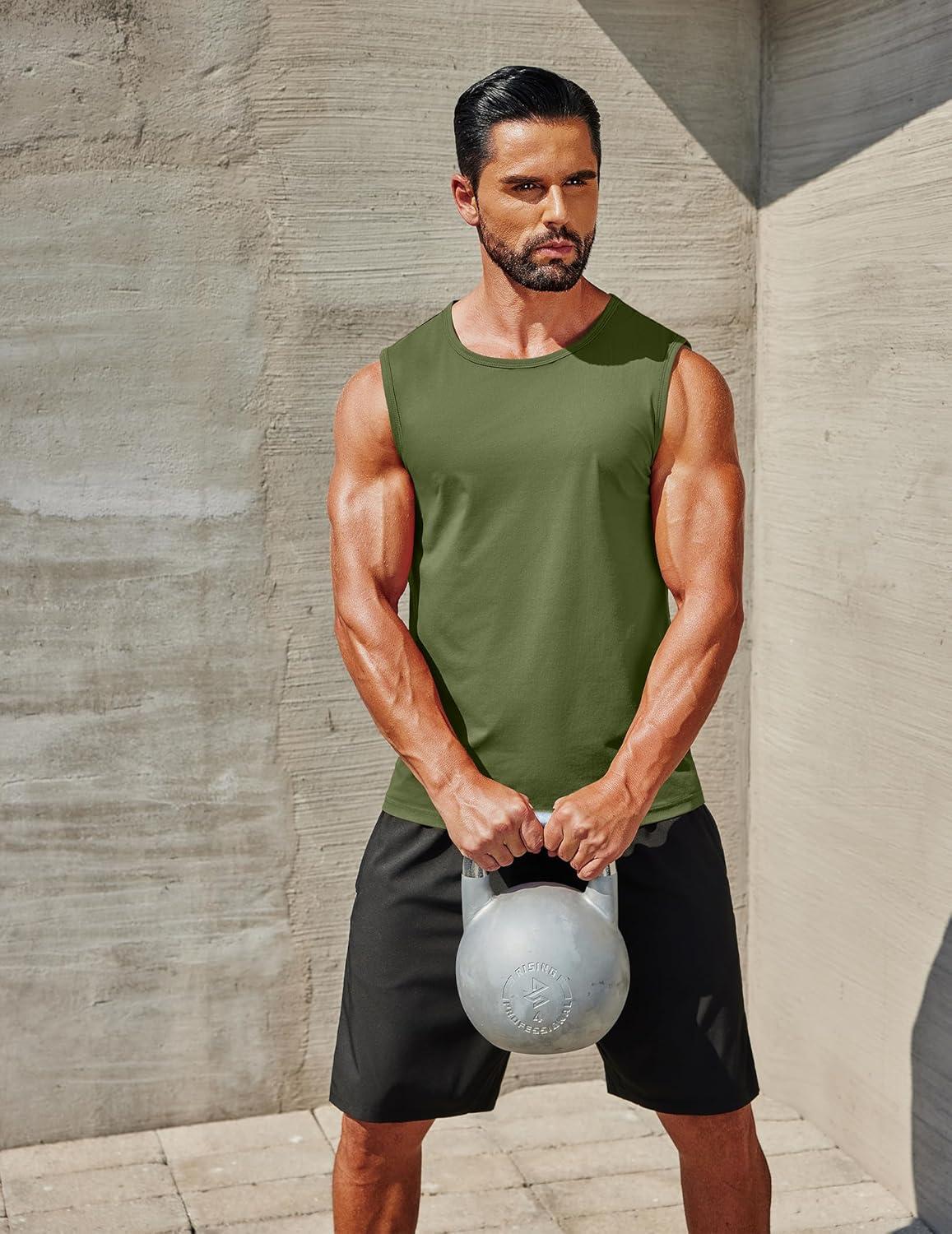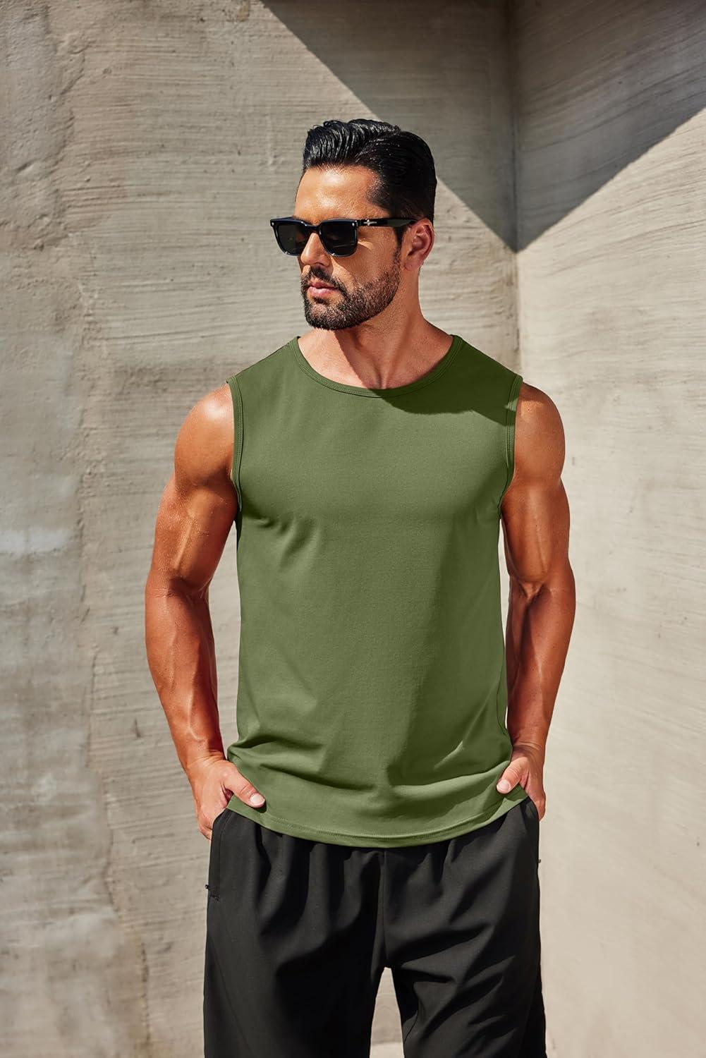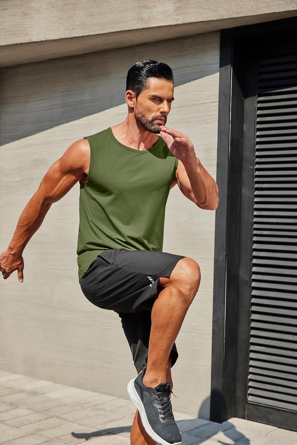 COOFANDY Men’s Workout Tank Tops 1/2 Pack Dry Fit Sleeveless Muscle Gym Shirts Stretch Bodybuilding Tee(Army Green)