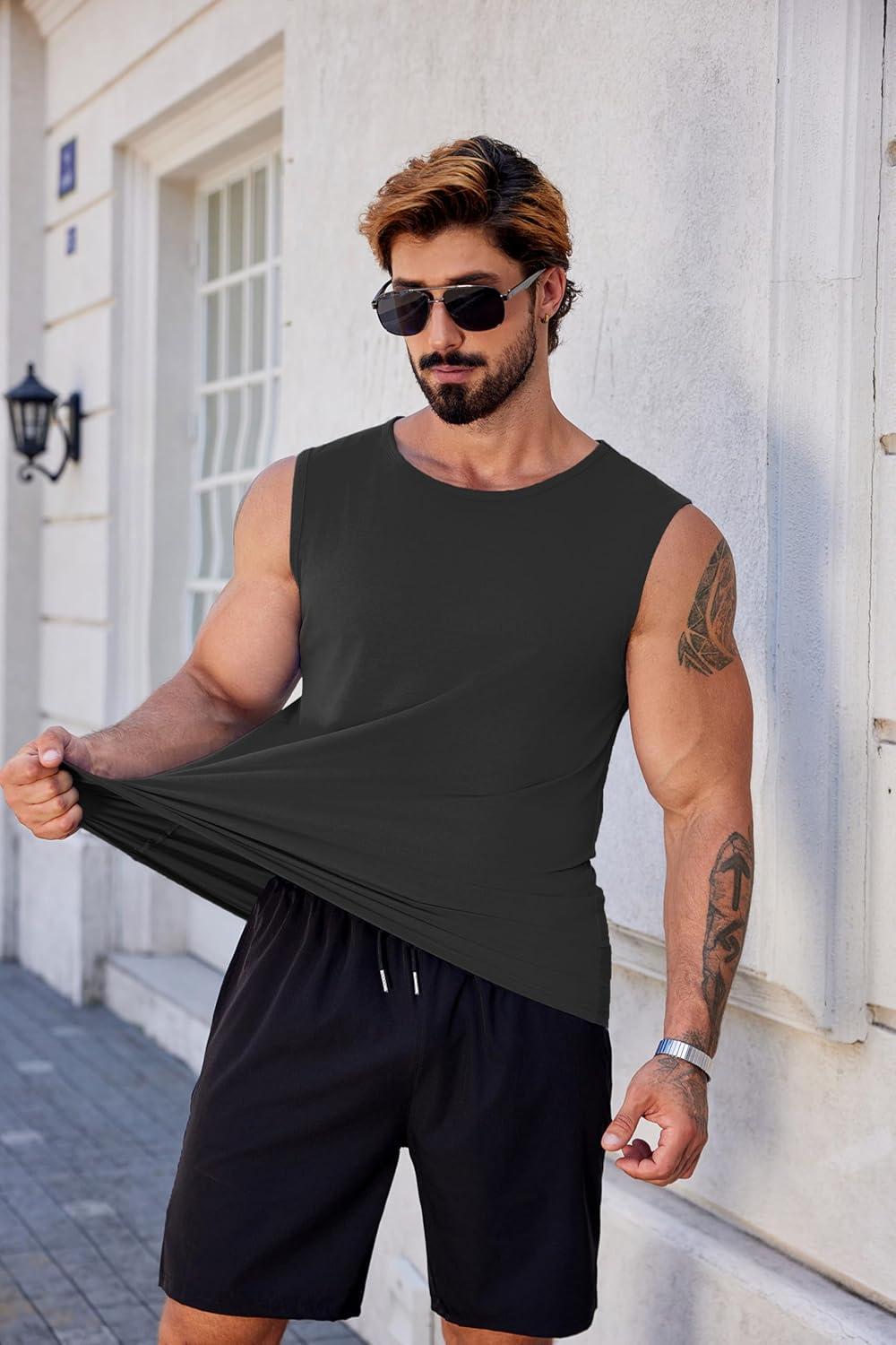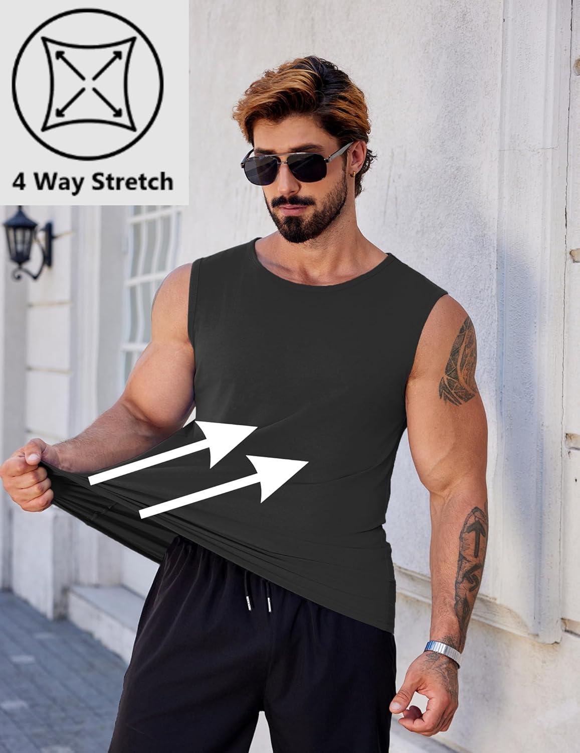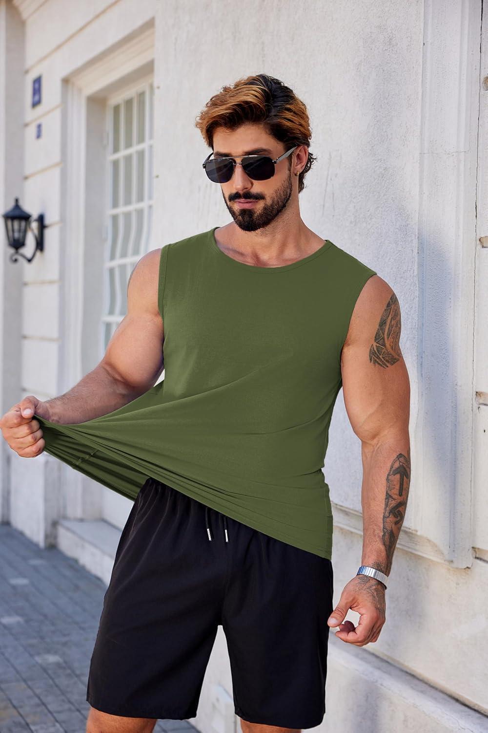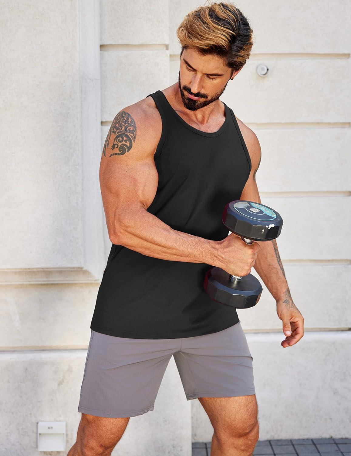 COOFANDY Men’s Workout Tank Top 3 Pack Quck Dry Sleeveless Gym Muscle Shirts Summer Swim Beach Tops(Black/Light Grey/Army Green)