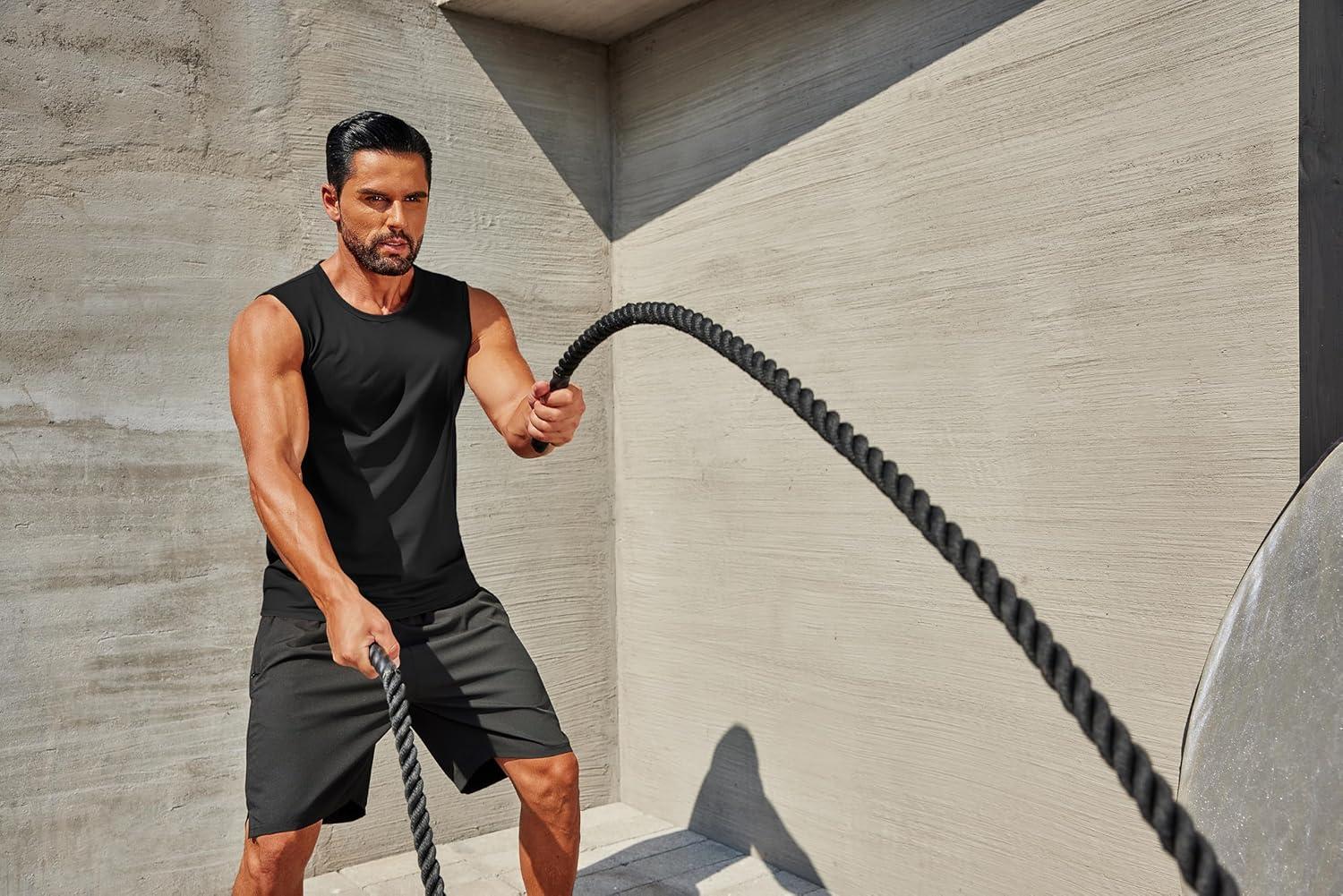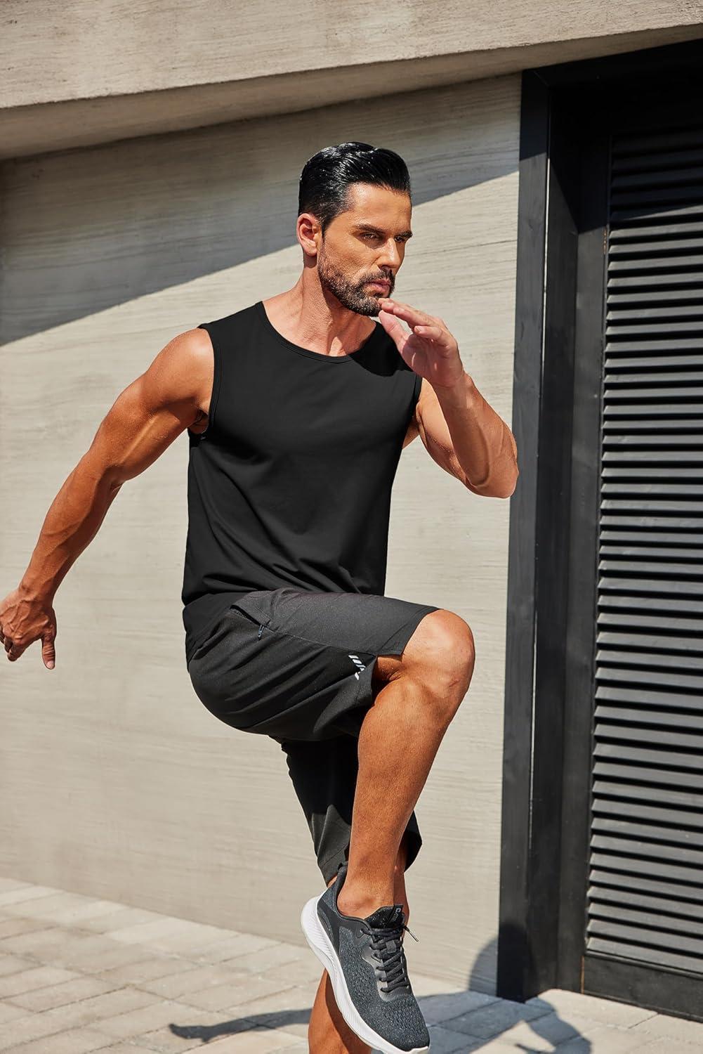 COOFANDY Men’s Workout Tank Tops 1/2 Pack Dry Fit Sleeveless Muscle Gym Shirts Stretch Bodybuilding Tee(Black)