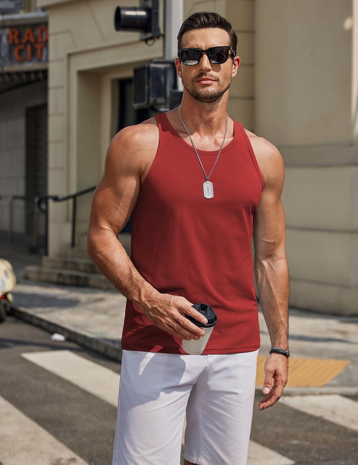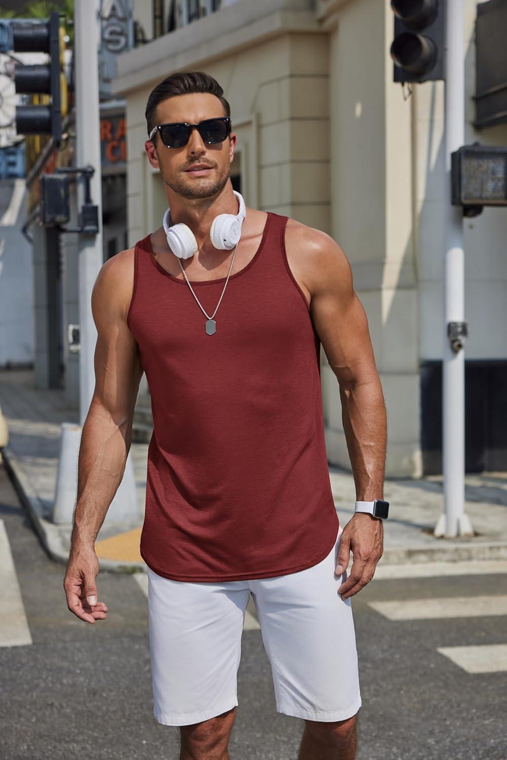 COOFANDY Men’s Workout Tank Top 3 Pack Quck Dry Sleeveless Gym Muscle Shirts Summer Swim Beach Tops(Black/White/Wine Red)