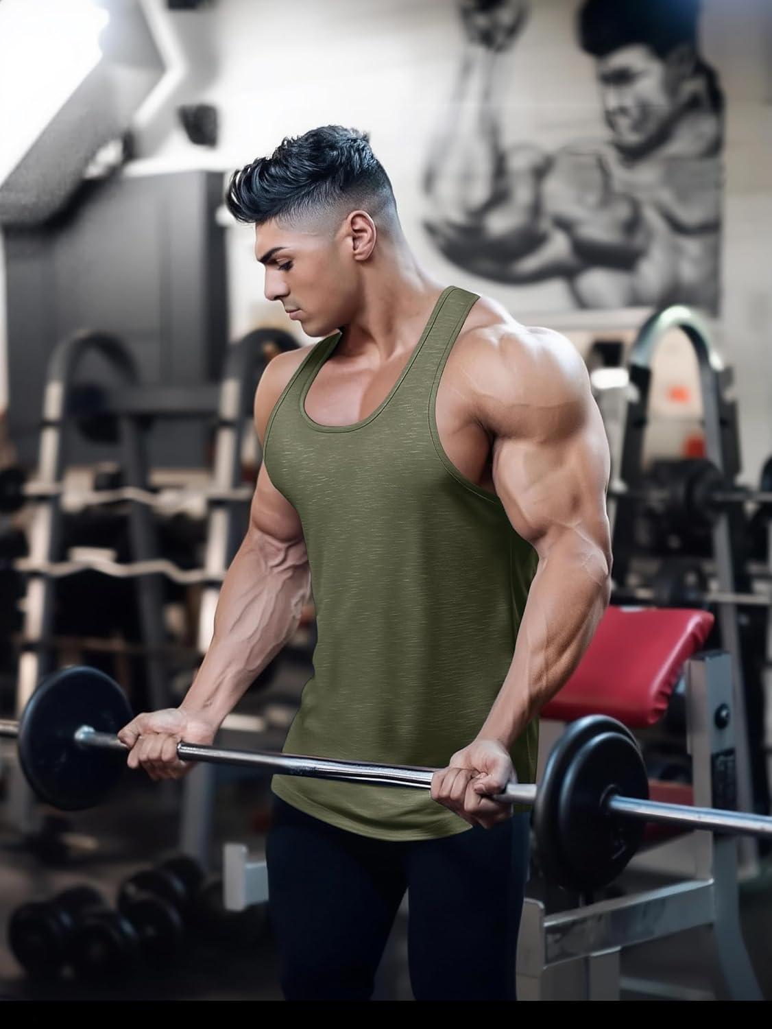 COOFANDY Men’s Workout Tank Tops 2 Pack Y Back Sleeveless Shirts Gym Muscle T Shirt Bodybuidling Athletic Stringer Tee(Army Green)