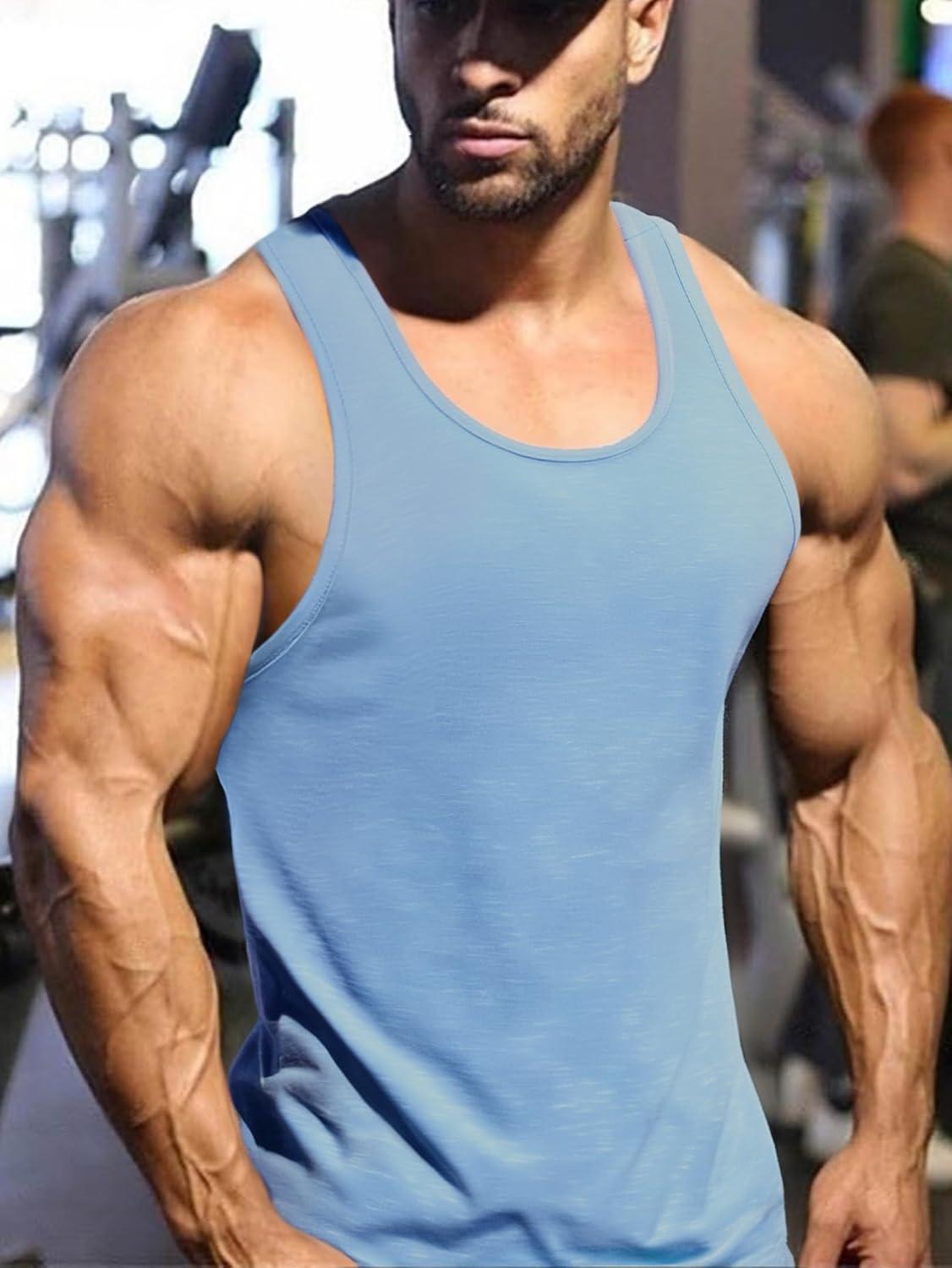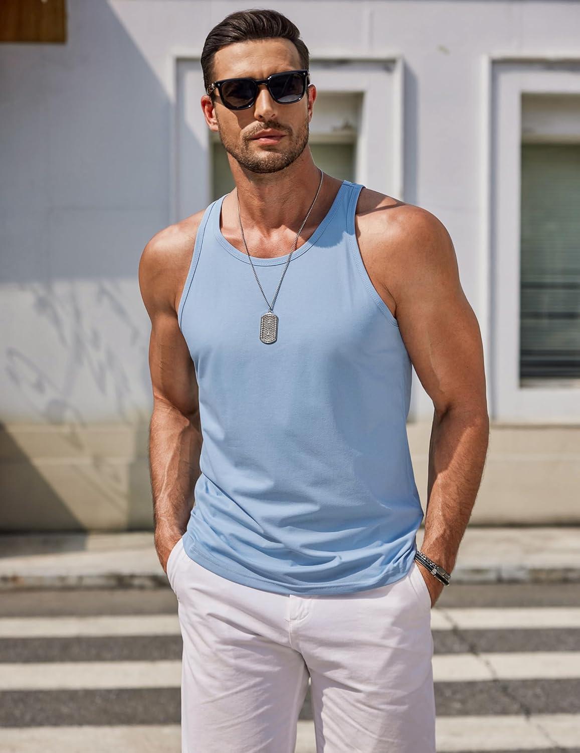 COOFANDY Men’s Workout Tank Top 2 Pack Casual Soft Sleeveless Gym Muscle Shirts Bodybuilding Tee(Whitelight Blue)