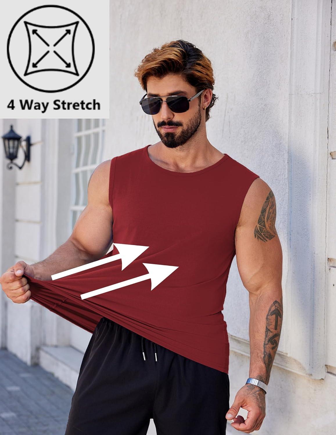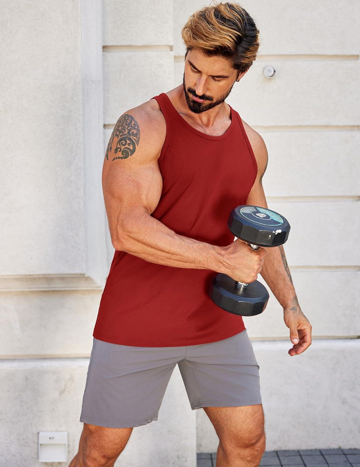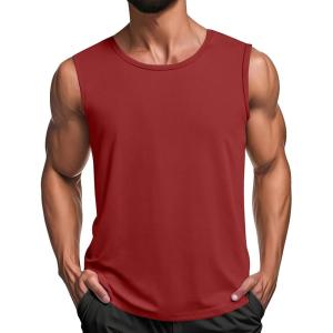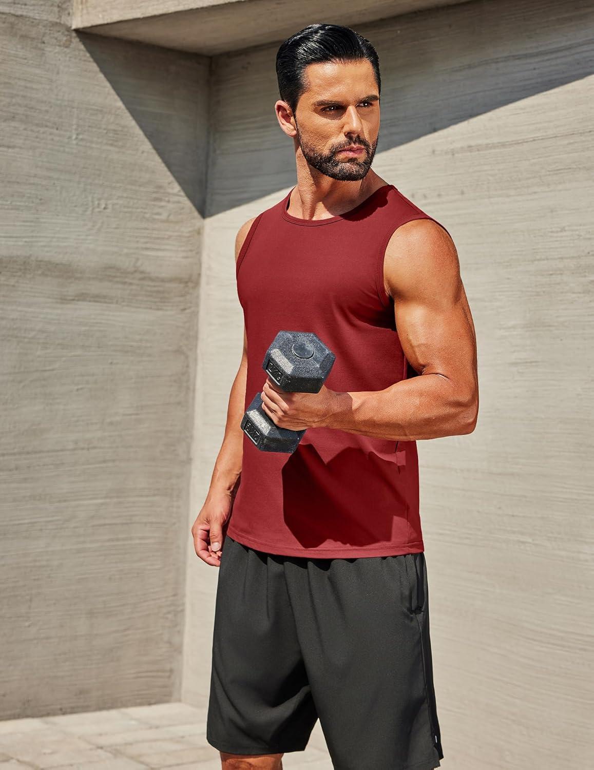 COOFANDY Men’s Workout Tank Tops 1/2 Pack Dry Fit Sleeveless Muscle Gym Shirts Stretch Bodybuilding Tee(Wine Red)