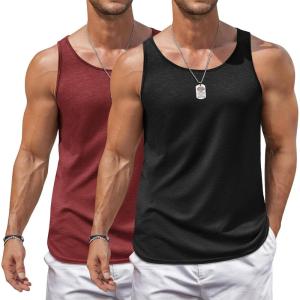 COOFANDY Men’s Workout Tank Tops 2 Pack Gym Muscle Sleeveless Shirt Casual Stringer Athletic Tee Shirts Summer(Black Wine Red)