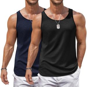 COOFANDY Men’s Workout Tank Tops 2 Pack Gym Muscle Sleeveless Shirt Casual Stringer Athletic Tee Shirts Summer(Blacknavy)