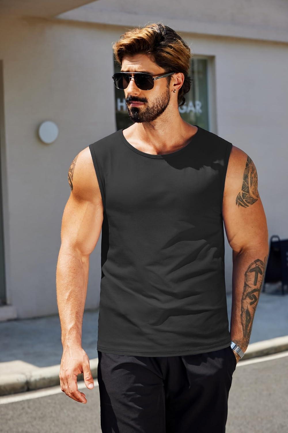 COOFANDY Men’s Workout Tank Tops 2 Pack Gym Muscle Sleeveless Shirt Casual Stringer Athletic Tee Shirts Summer(Black)