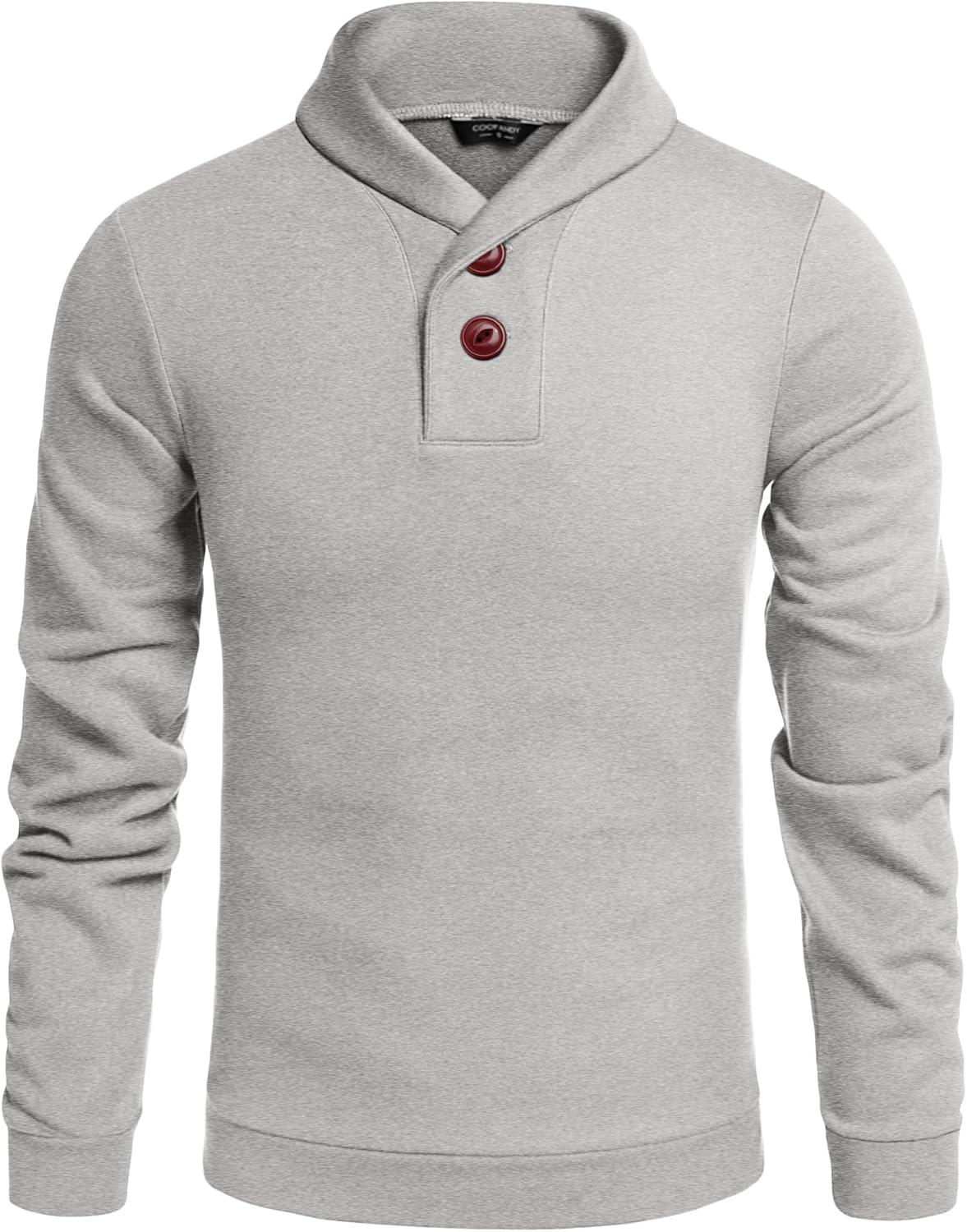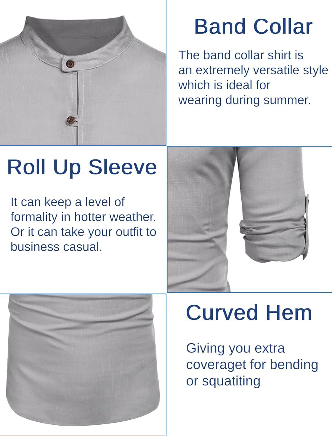 COOFANDY Men’s Casual Henley Shirt Long Sleeve Band Collar Shirts Summer Beach Hippie Button T-Shirts(Grey)