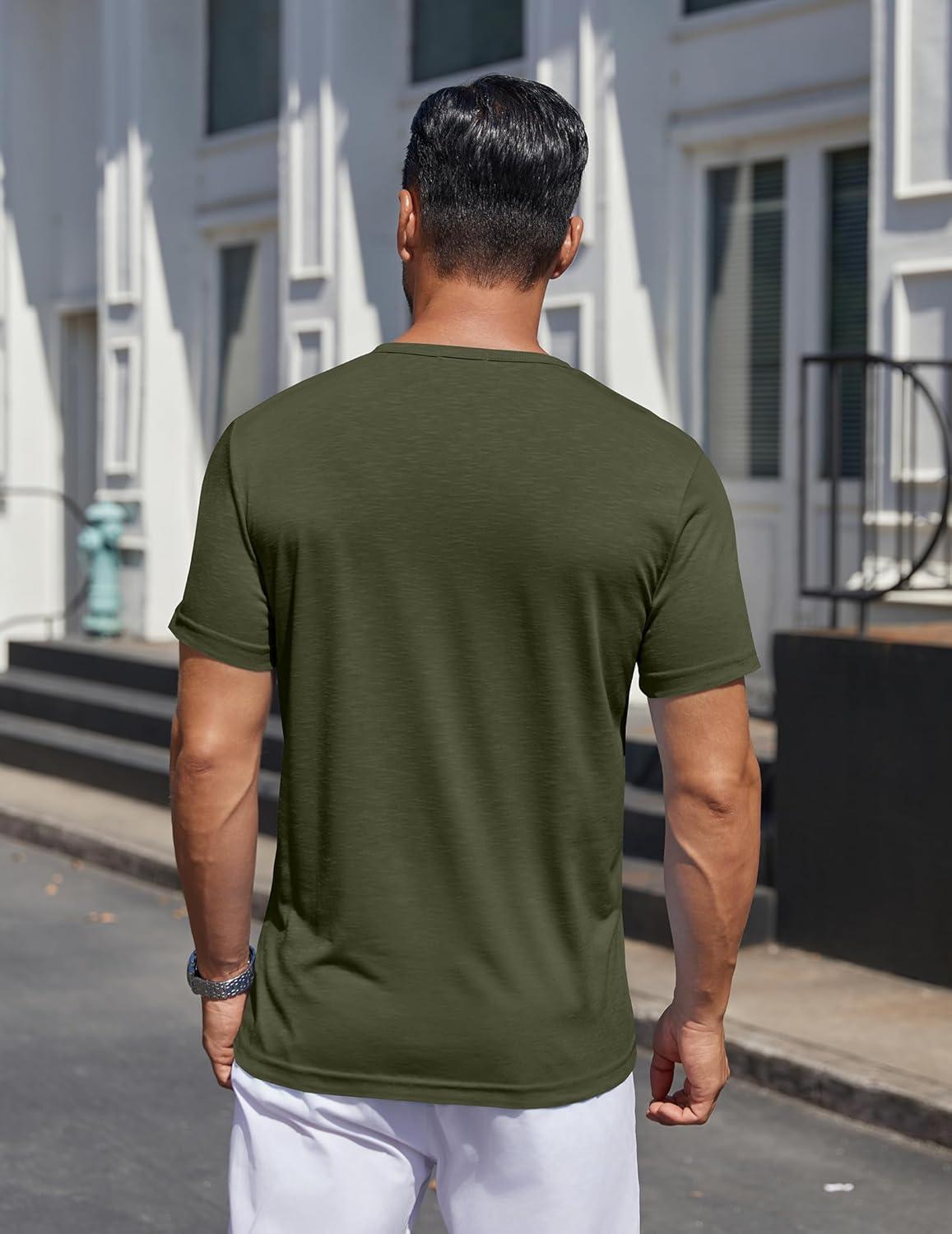 COOFANDY Mens Henley Shirts Short Sleeve Casual T Shirt Plain Slim Fit Henley Stylish Summer Tee Shirts with Pocket(Army Green)