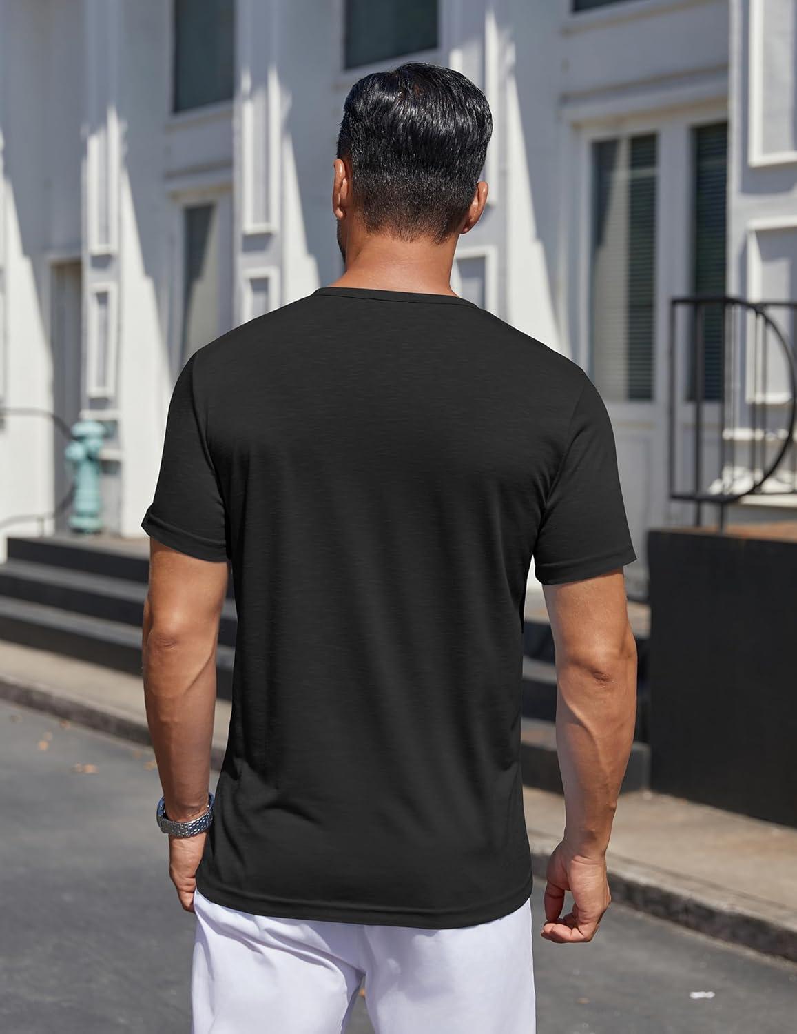 COOFANDY Mens Henley Shirts Short Sleeve Casual T Shirt Plain Slim Fit Henley Stylish Summer Tee Shirts with Pocket(Black)