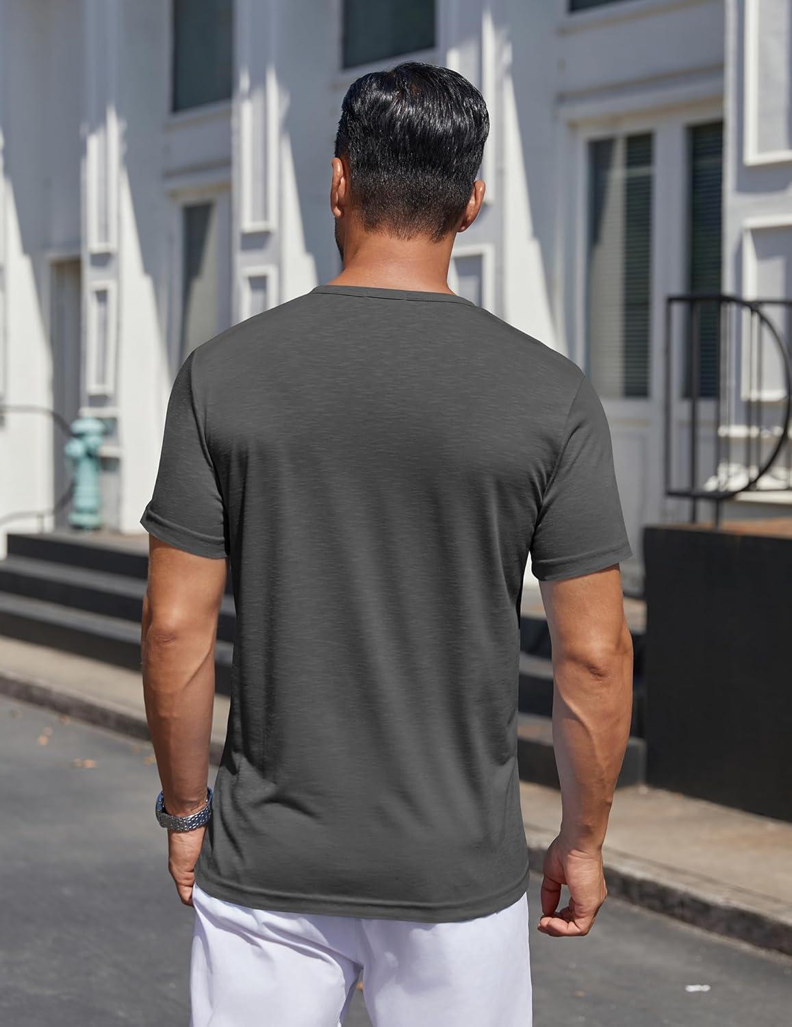 COOFANDY Mens Henley Shirts Short Sleeve Casual T Shirt Plain Slim Fit Henley Stylish Summer Tee Shirts with Pocket(Dark Grey)