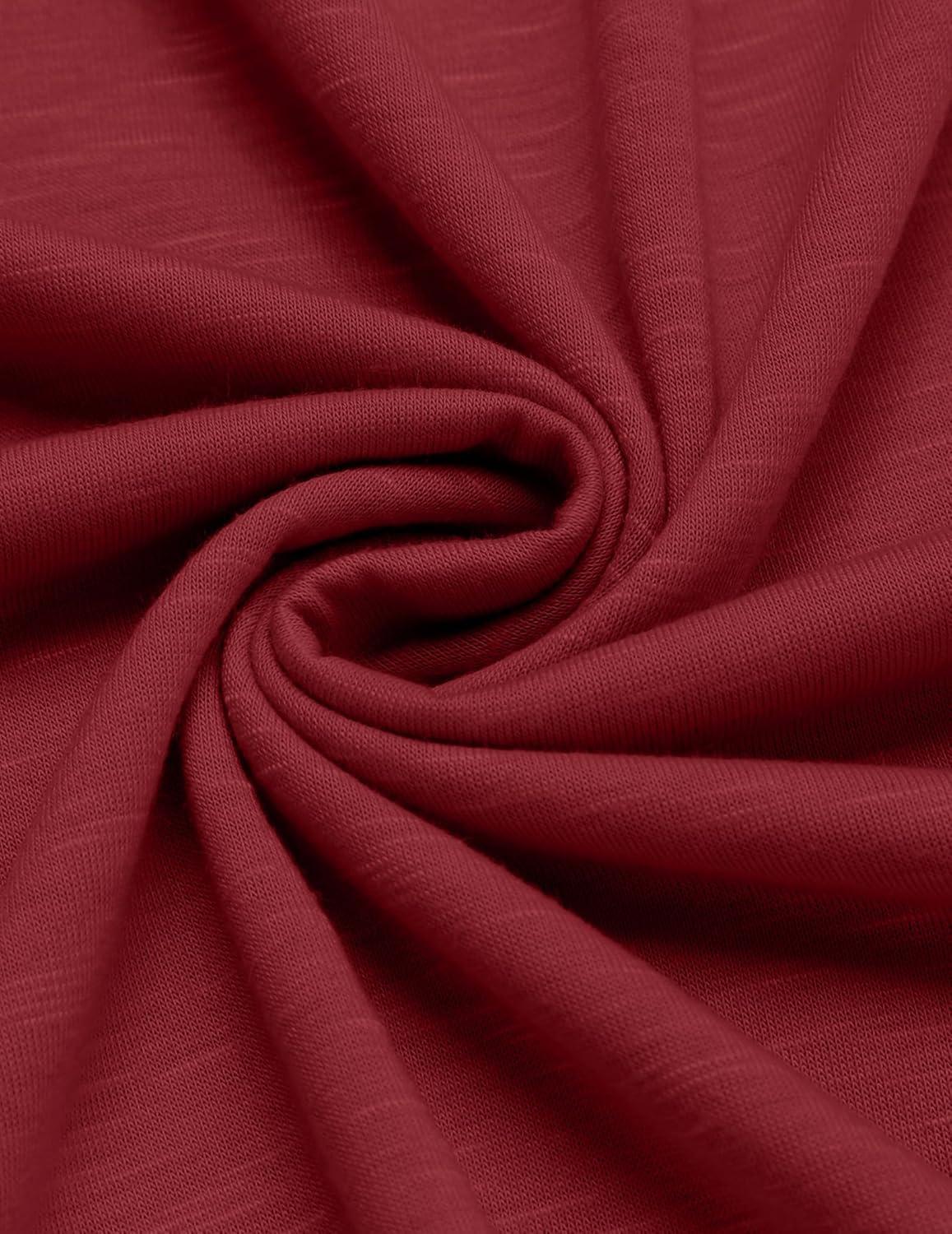 COOFANDY Henley Shirts for Men Short Sleeve Band Collar Casual Shirt Summer Hippie Vacation Beach T Shirts with Pocket(Wine Red)