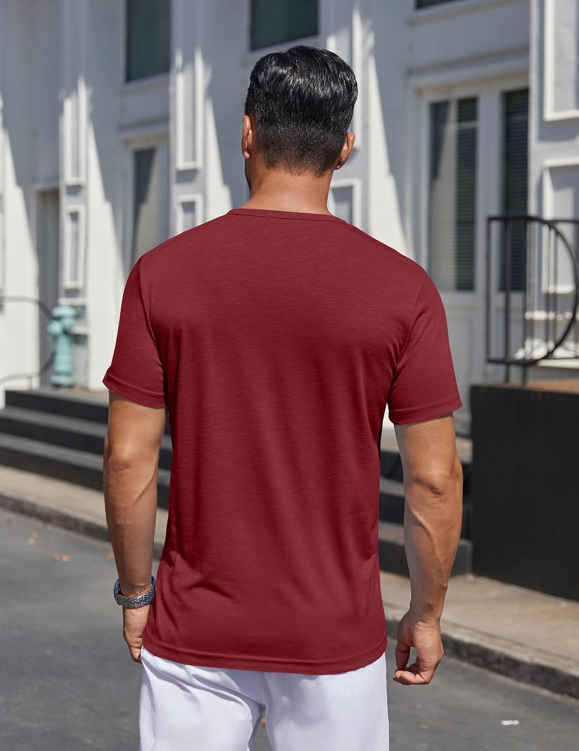 COOFANDY Mens Henley Shirts Short Sleeve Casual T Shirt Plain Slim Fit Henley Stylish Summer Tee Shirts with Pocket(Wine Red)