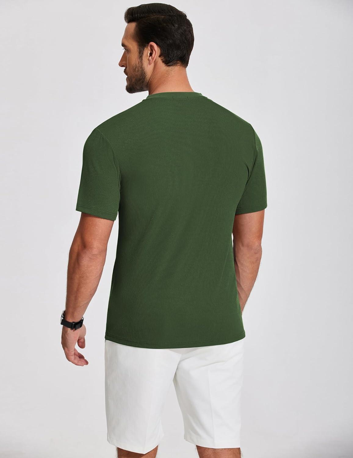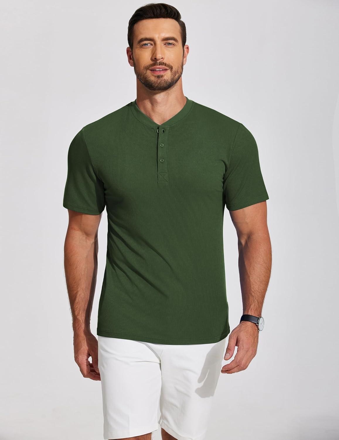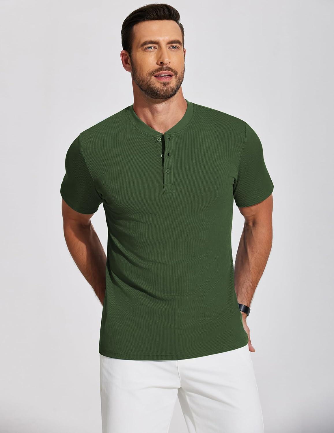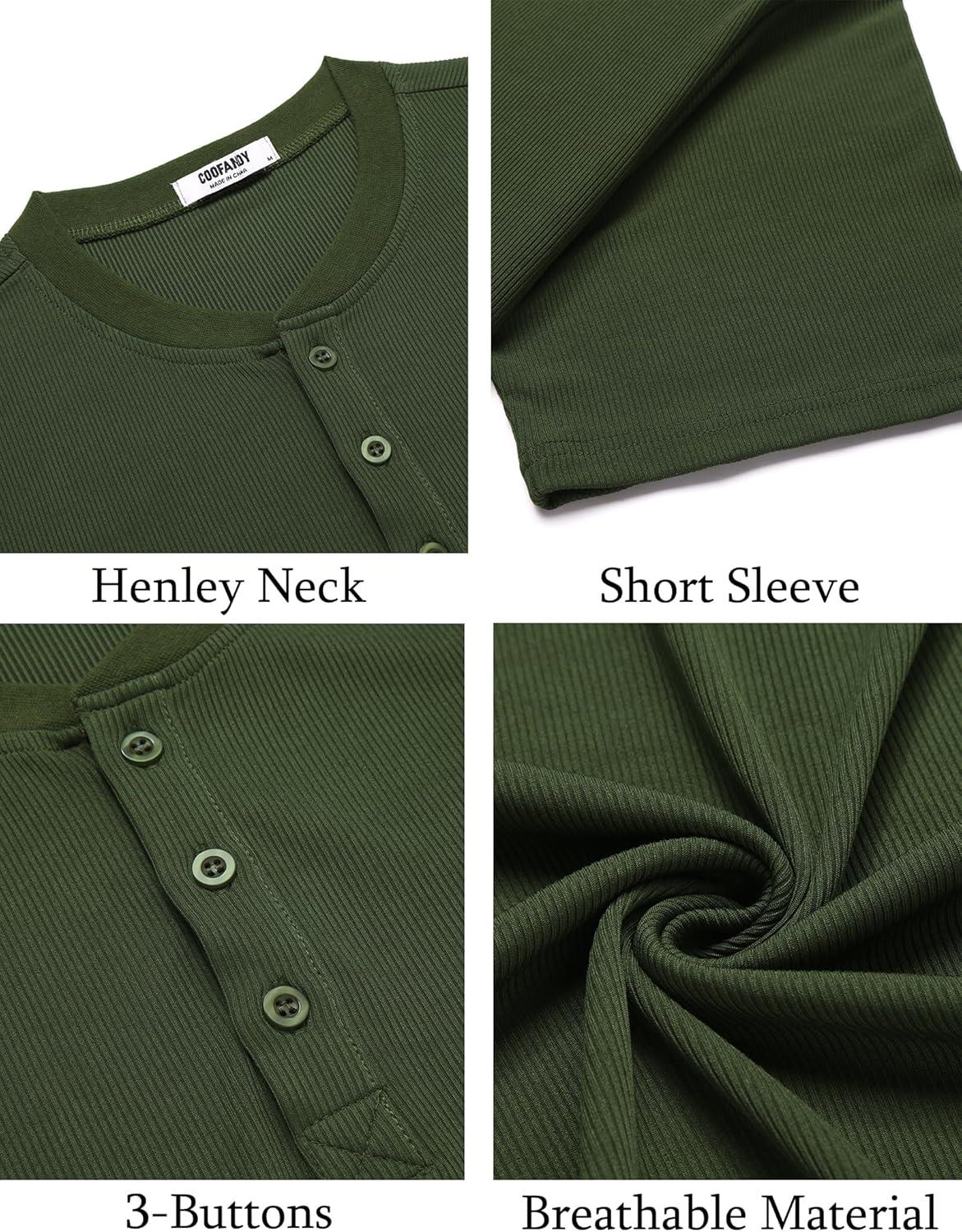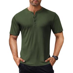 COOFANDY Men’s Henley Shirts Short Sleeve Ribbed T-Shirts Bodybuilding Workout Tee Shirts(Army Green)