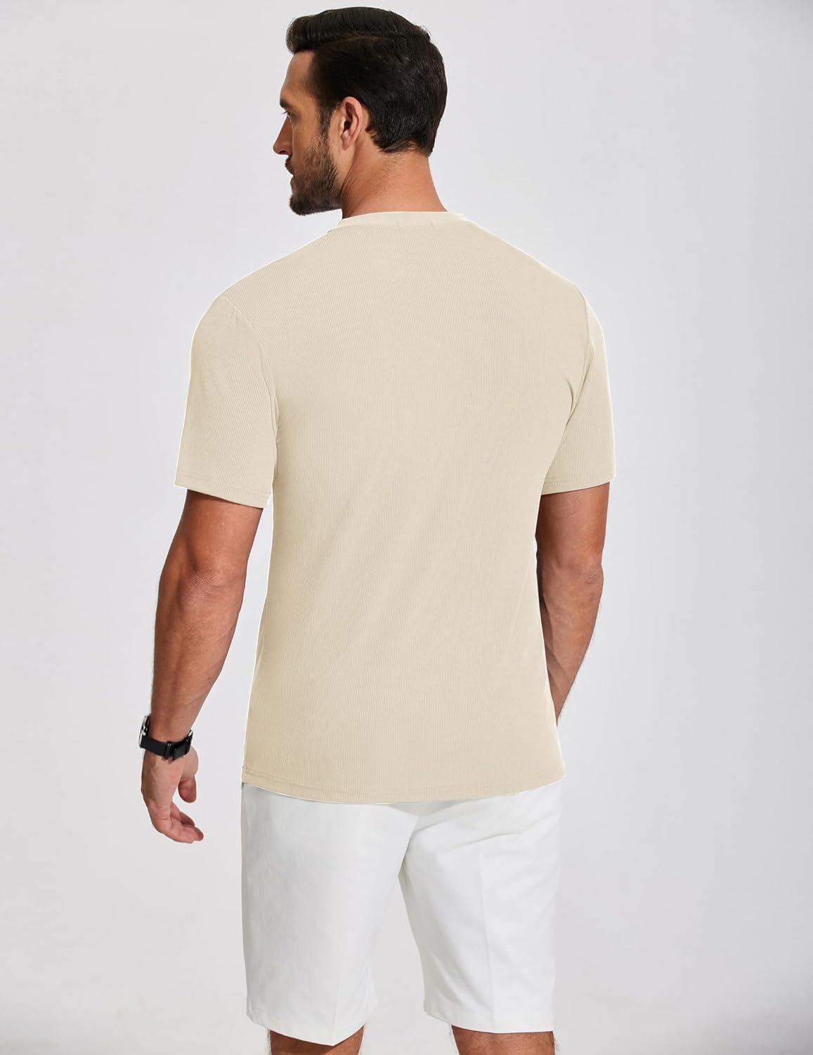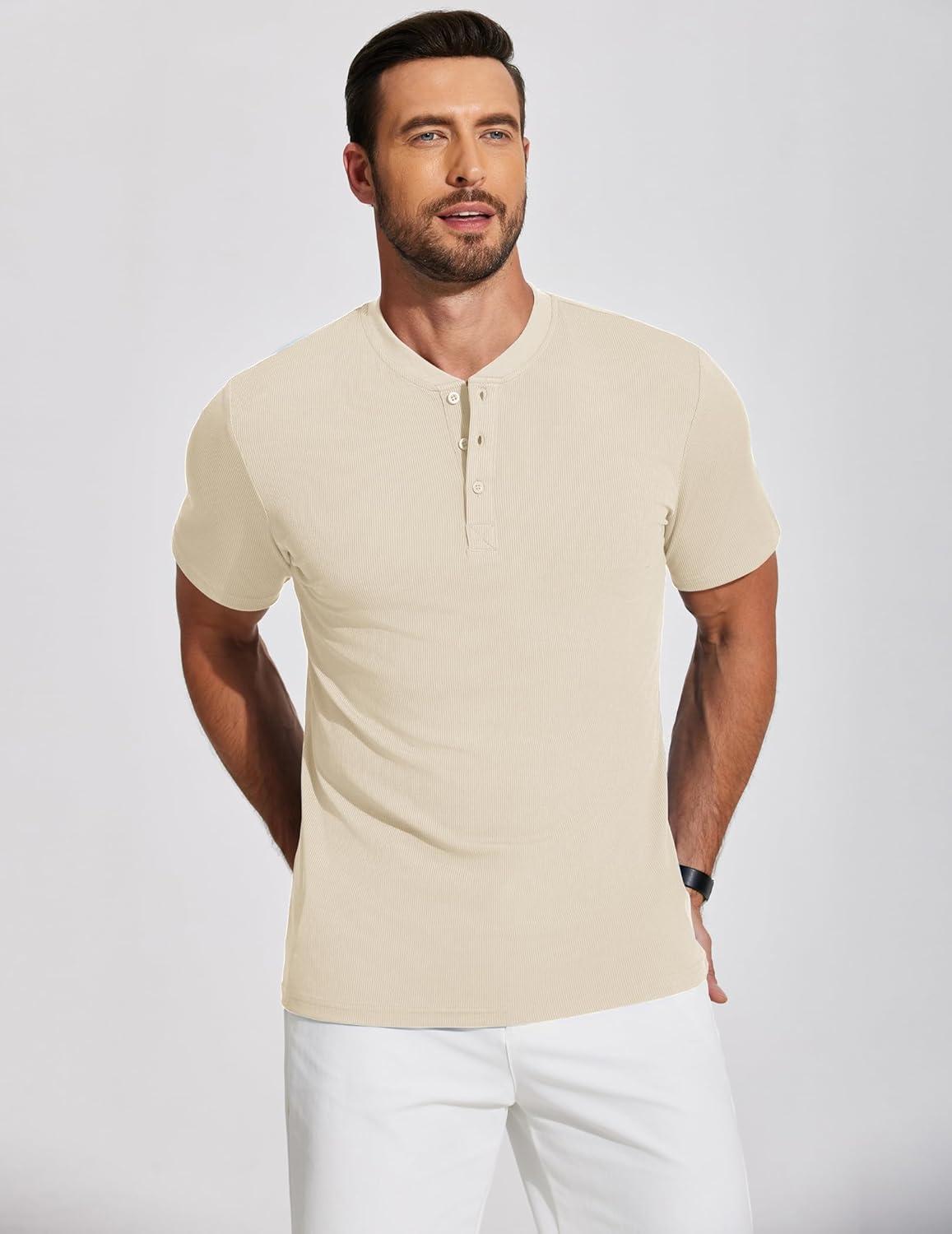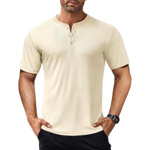 COOFANDY Men’s Henley Shirts Short Sleeve Ribbed T-Shirts Bodybuilding Workout Tee Shirts(Beige)