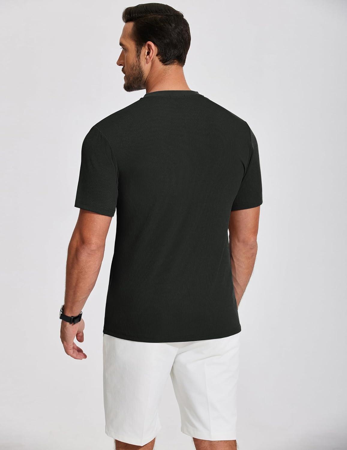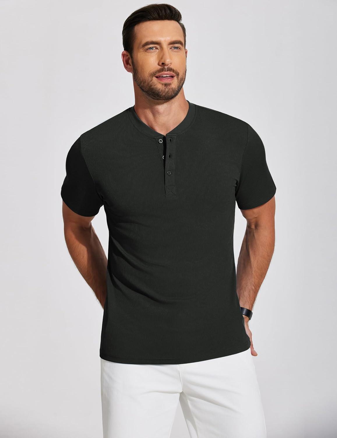 COOFANDY Men’s Henley Shirts Short Sleeve Ribbed T-Shirts Bodybuilding Workout Tee Shirts(Black)