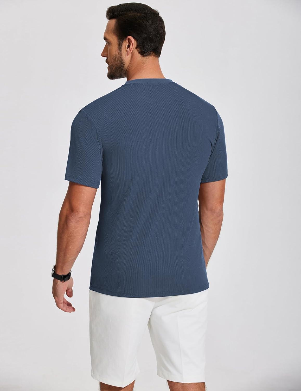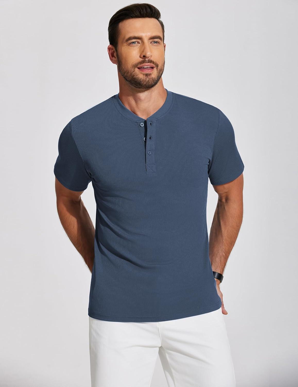 COOFANDY Men’s Henley Shirts Short Sleeve Ribbed T-Shirts Bodybuilding Workout Tee Shirts(Grey Blue)