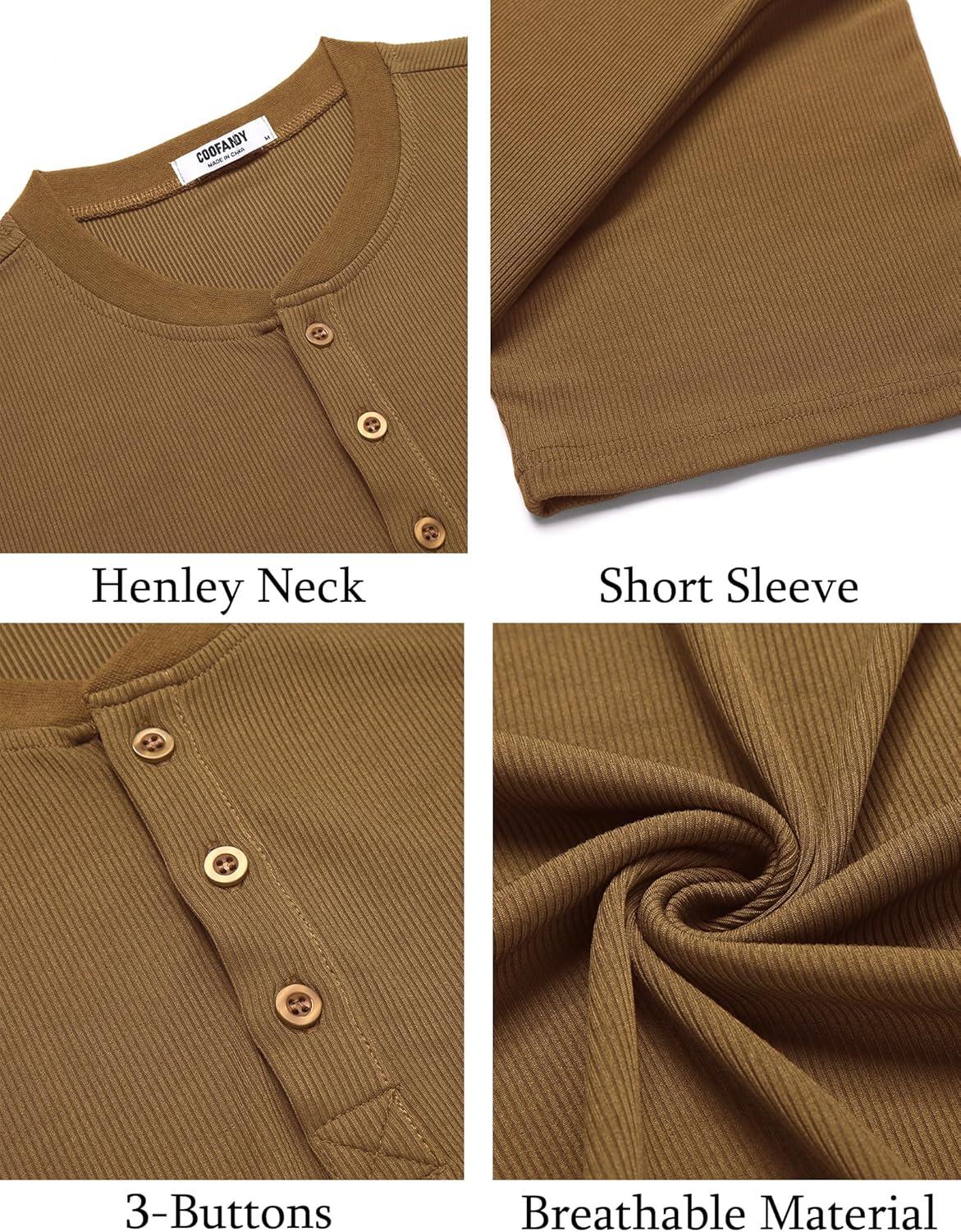 COOFANDY Mens Henley Shirts Short Sleeve Casual T Shirt Plain Slim Fit Henley Stylish Summer Tee Shirts with Pocket(Khaki)
