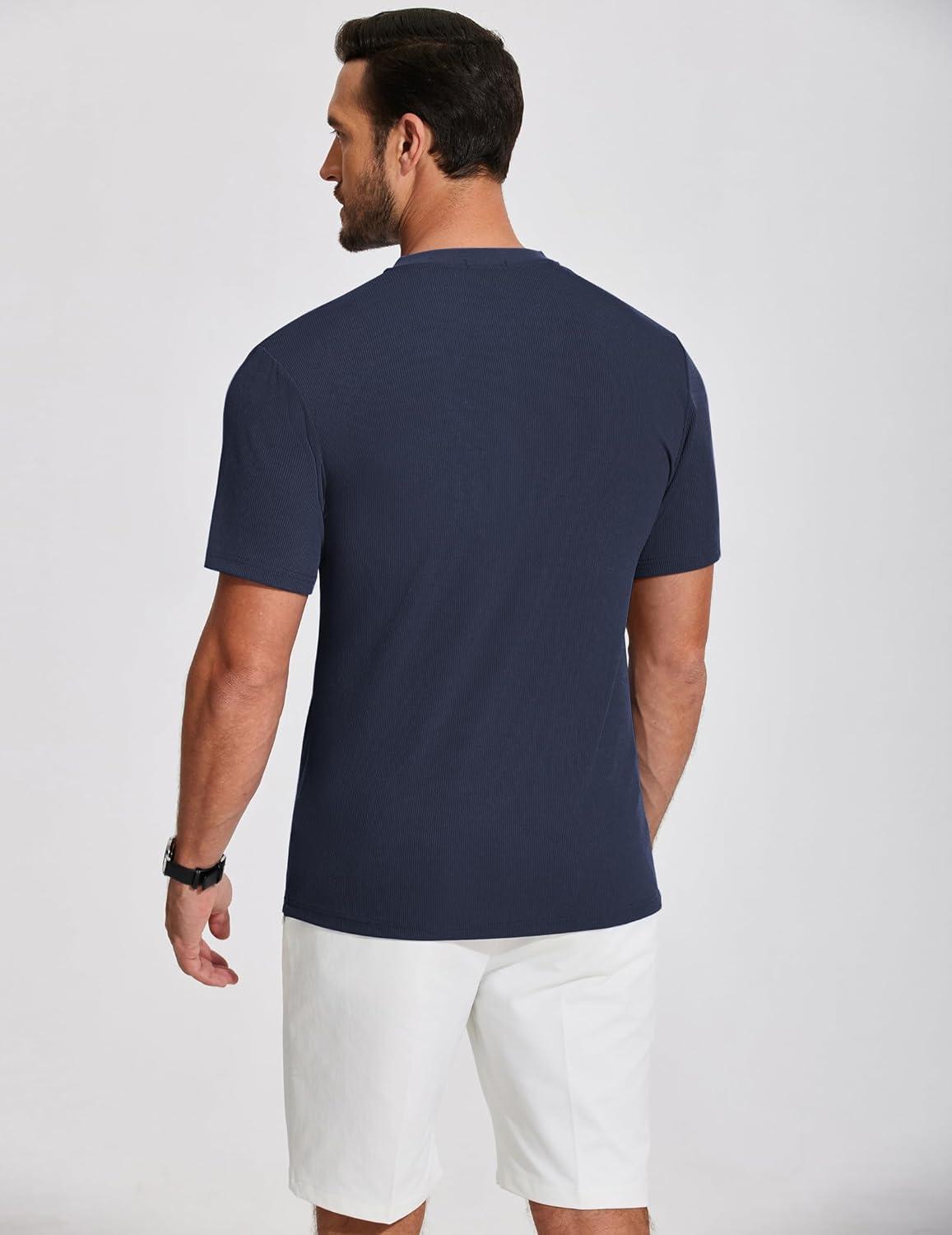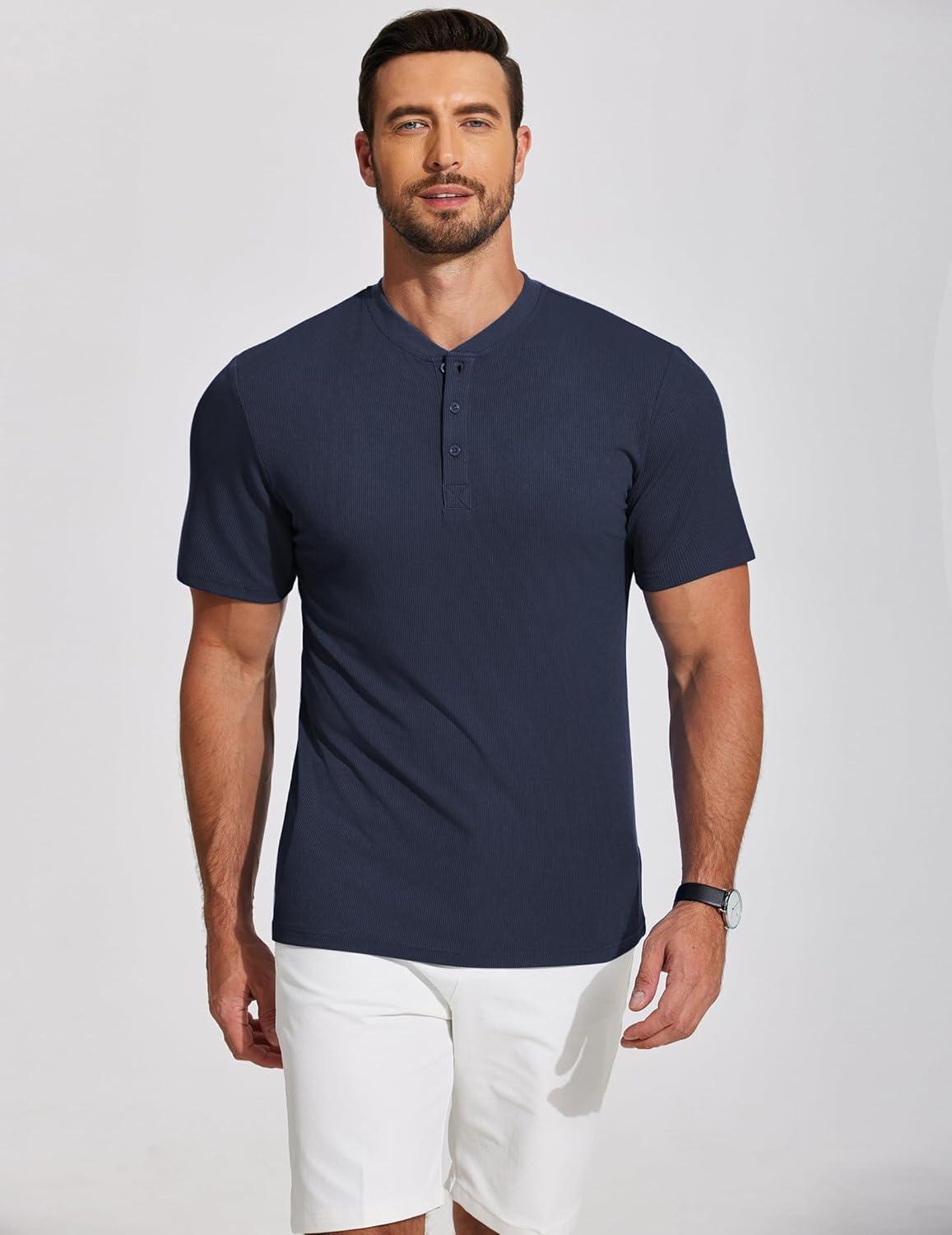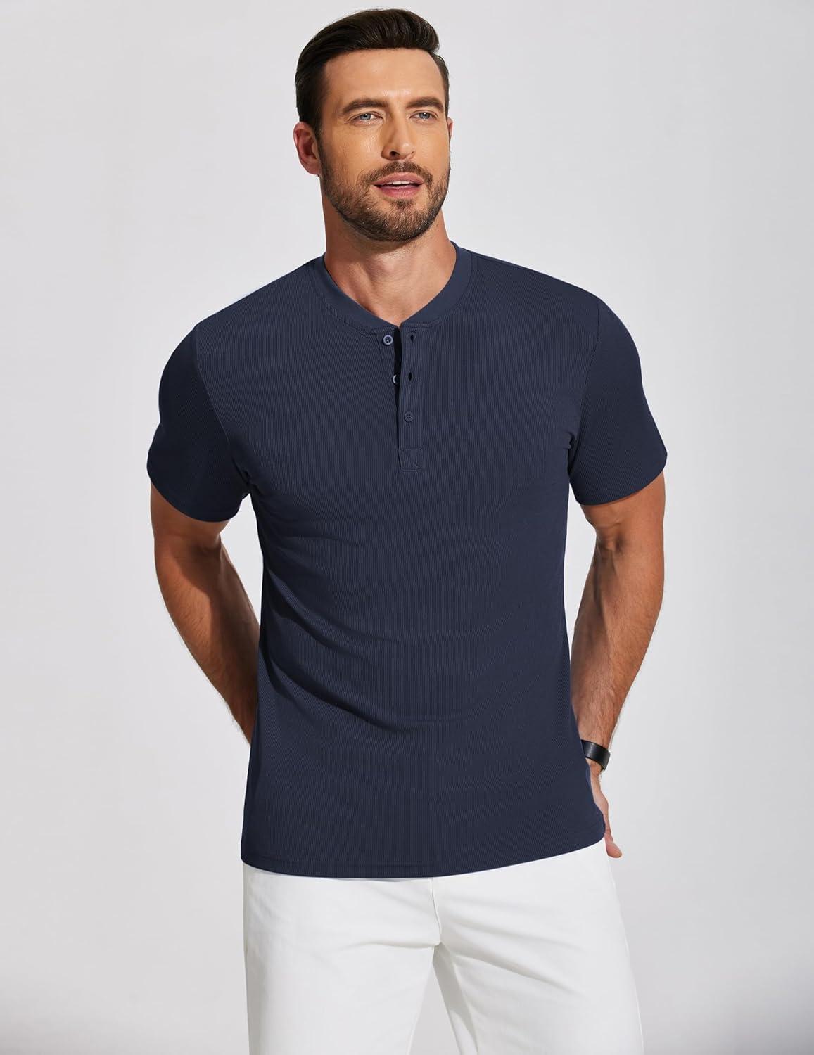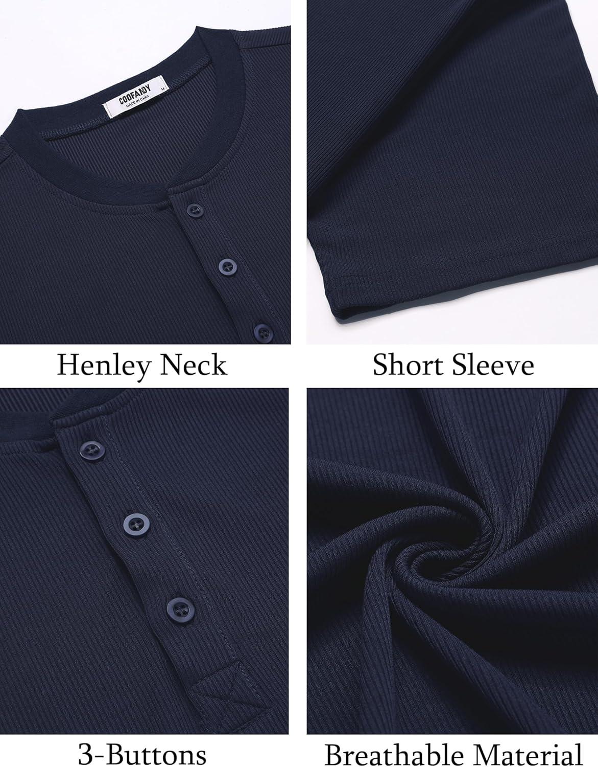COOFANDY Men’s Henley Shirts Short Sleeve Ribbed T-Shirts Bodybuilding Workout Tee Shirts(Navy Blue)