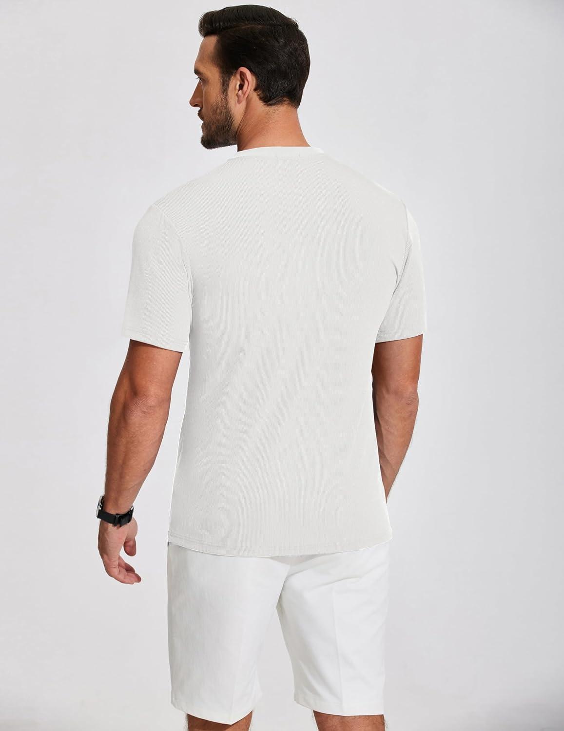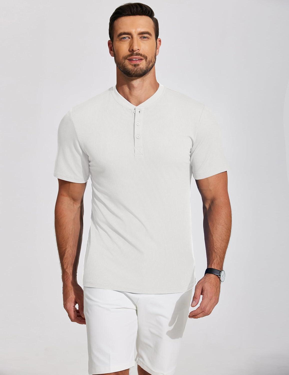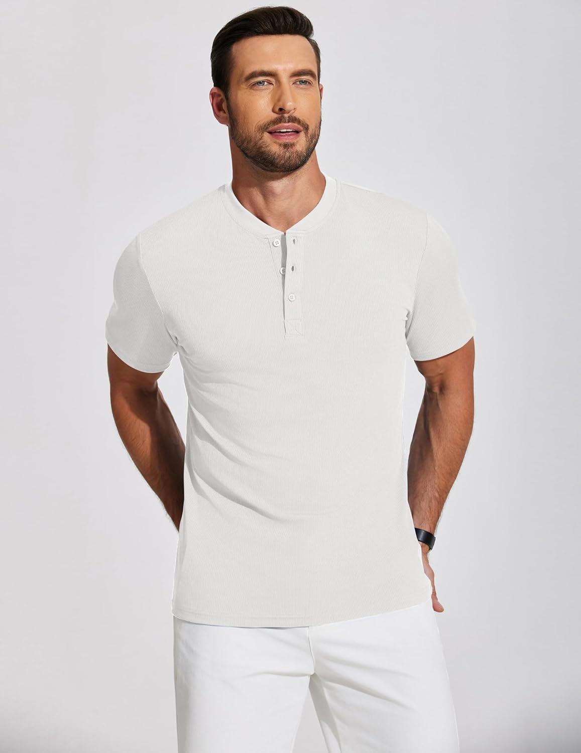COOFANDY Men’s Henley Shirts Short Sleeve Ribbed T-Shirts Bodybuilding Workout Tee Shirts(White)