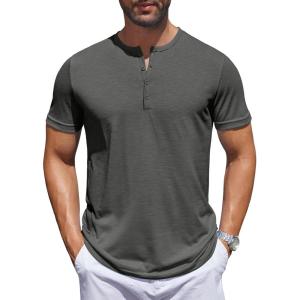 COOFANDY Men’s Henley Shirts Short Sleeve Collarless Button T-Shirt Fashion Casual Basic Tee Tops(Dark Grey)