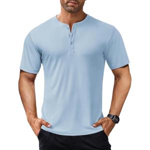 COOFANDY Men’s Henley Shirts Short Sleeve Ribbed T-Shirts Bodybuilding Workout Tee Shirts(Light Blue)