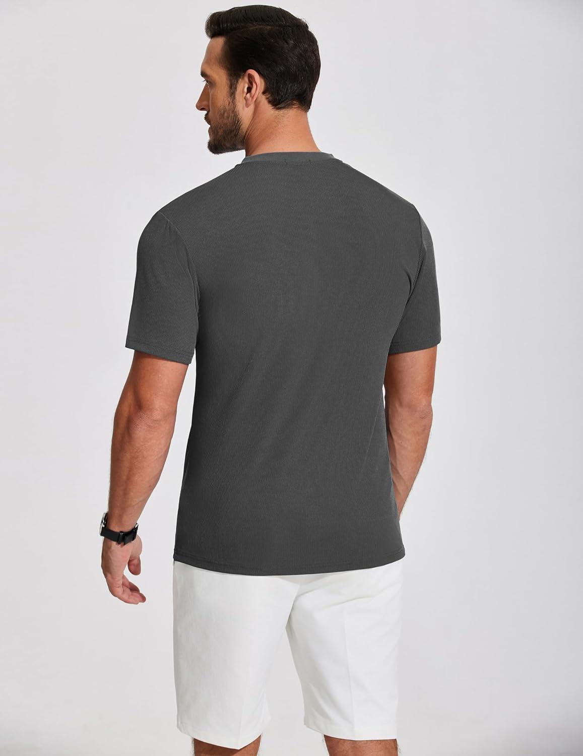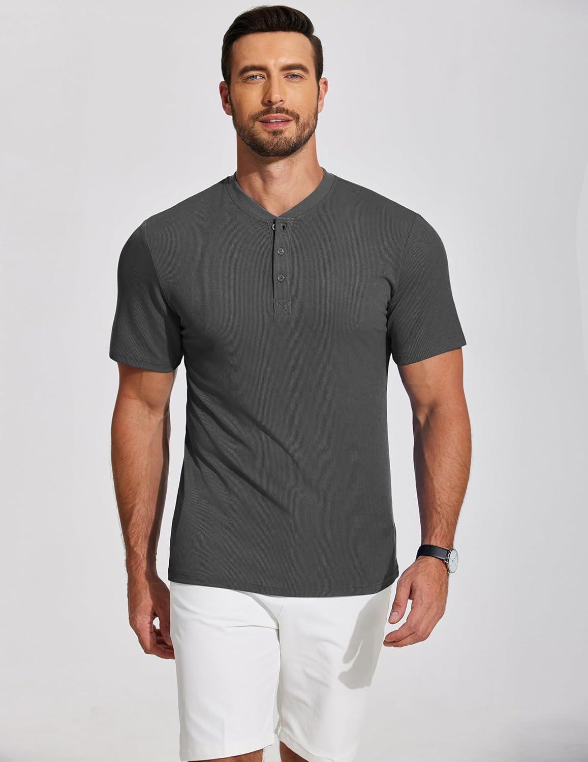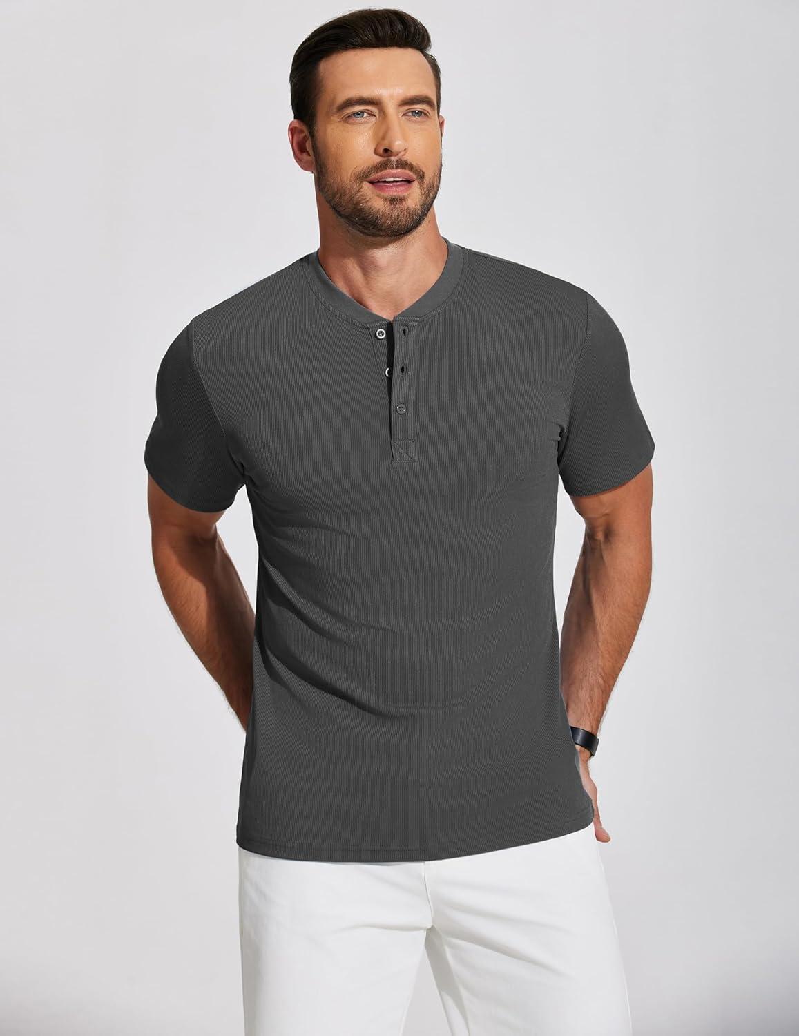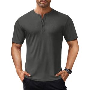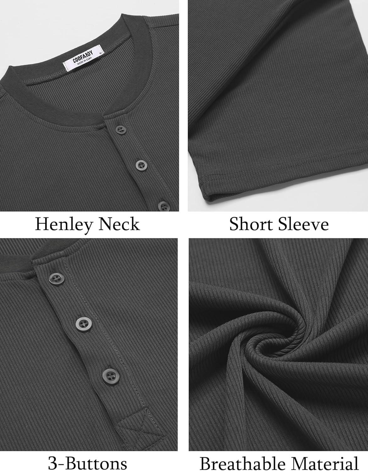 COOFANDY Men’s Henley Shirts Short Sleeve Ribbed T-Shirts Bodybuilding Workout Tee Shirts(Dark Gray)