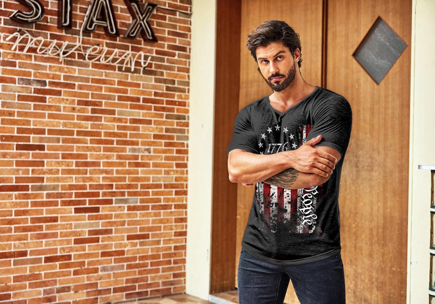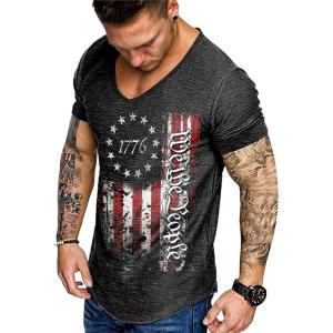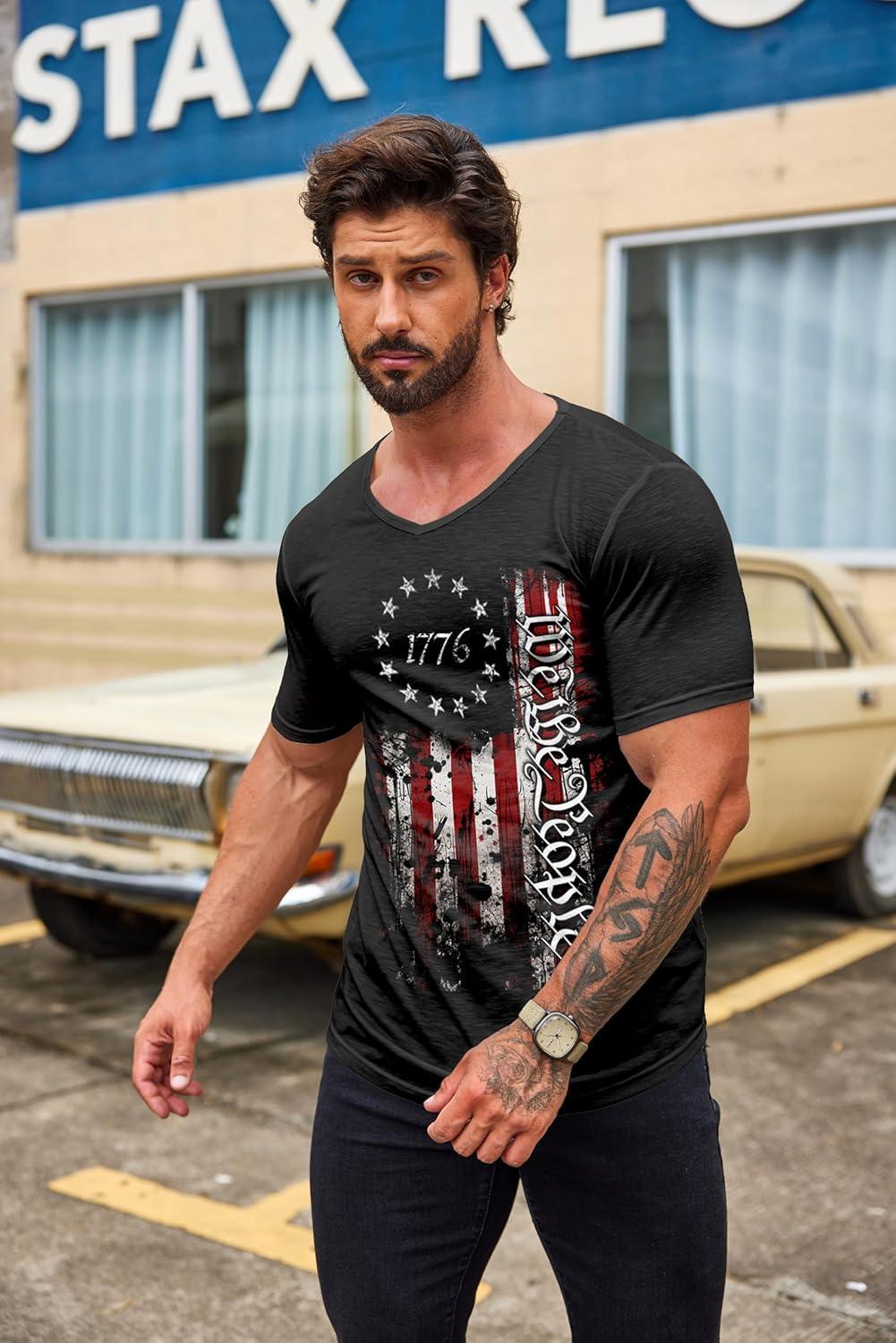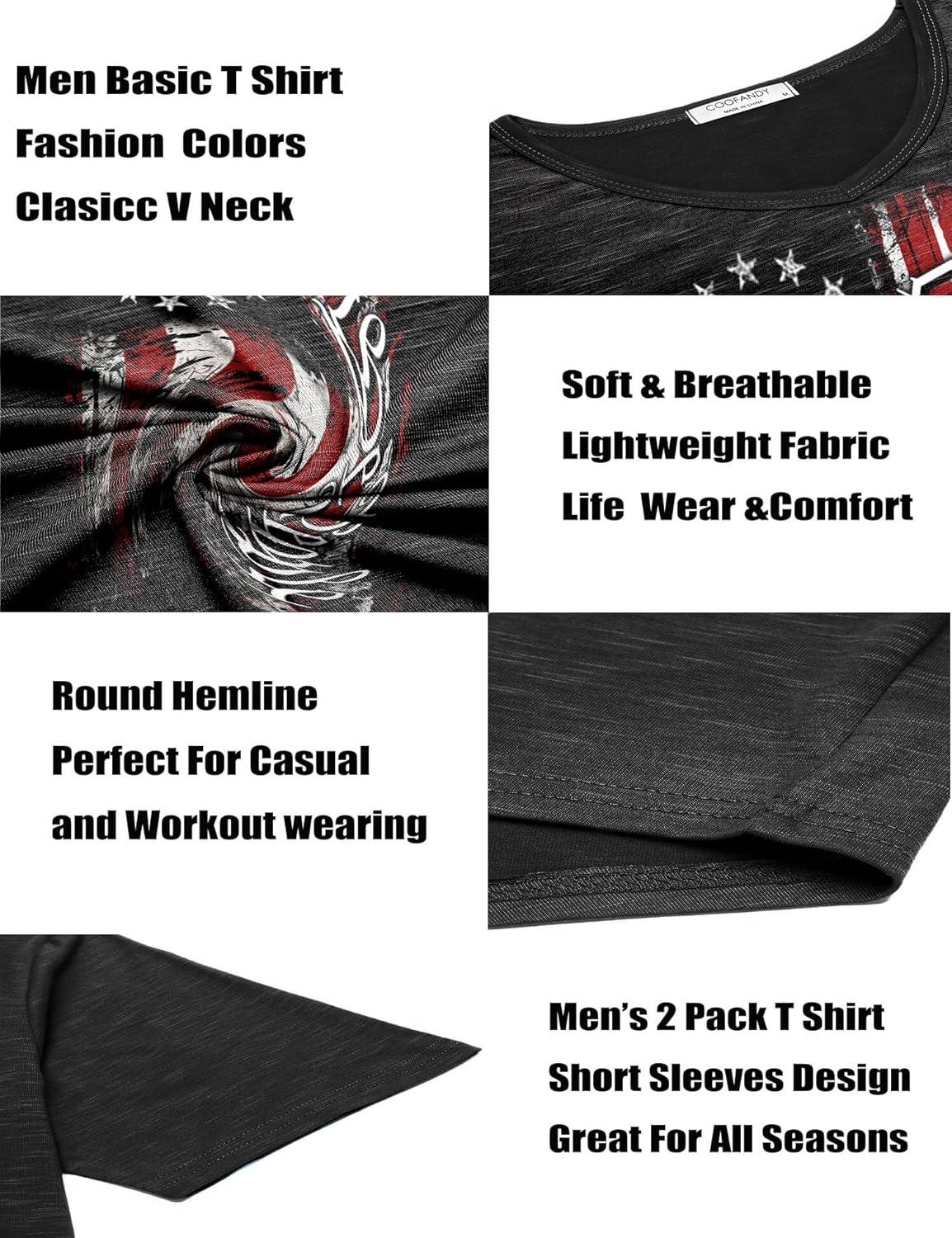COOFANDY Mens 2 Pack Muscle V Neck T Shirt Fitted Gym Workout Short Sleeve Bodybuilding Tee(Black Usa Flag)