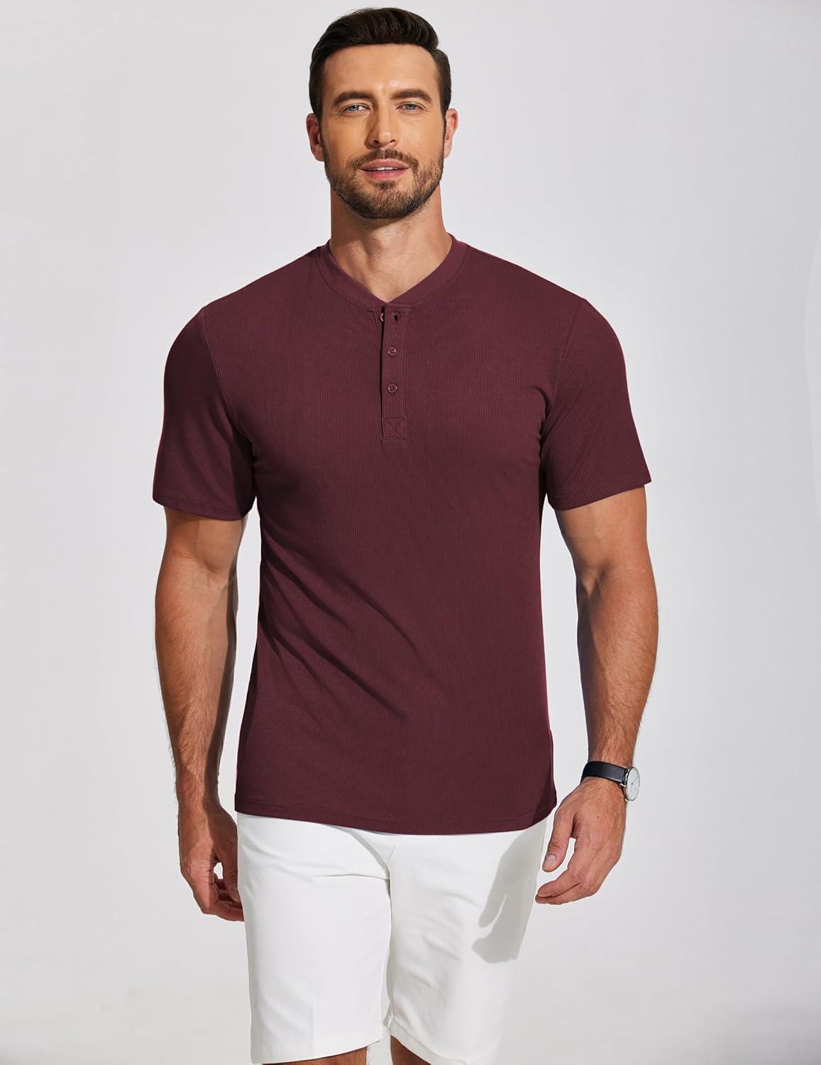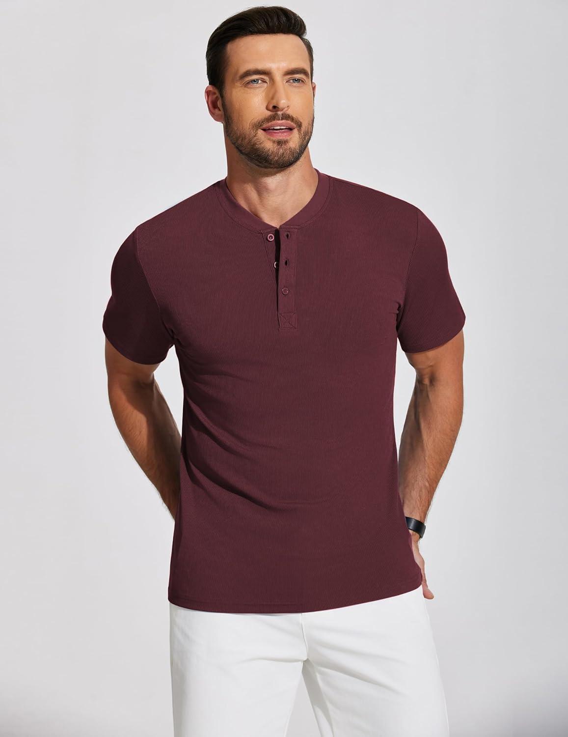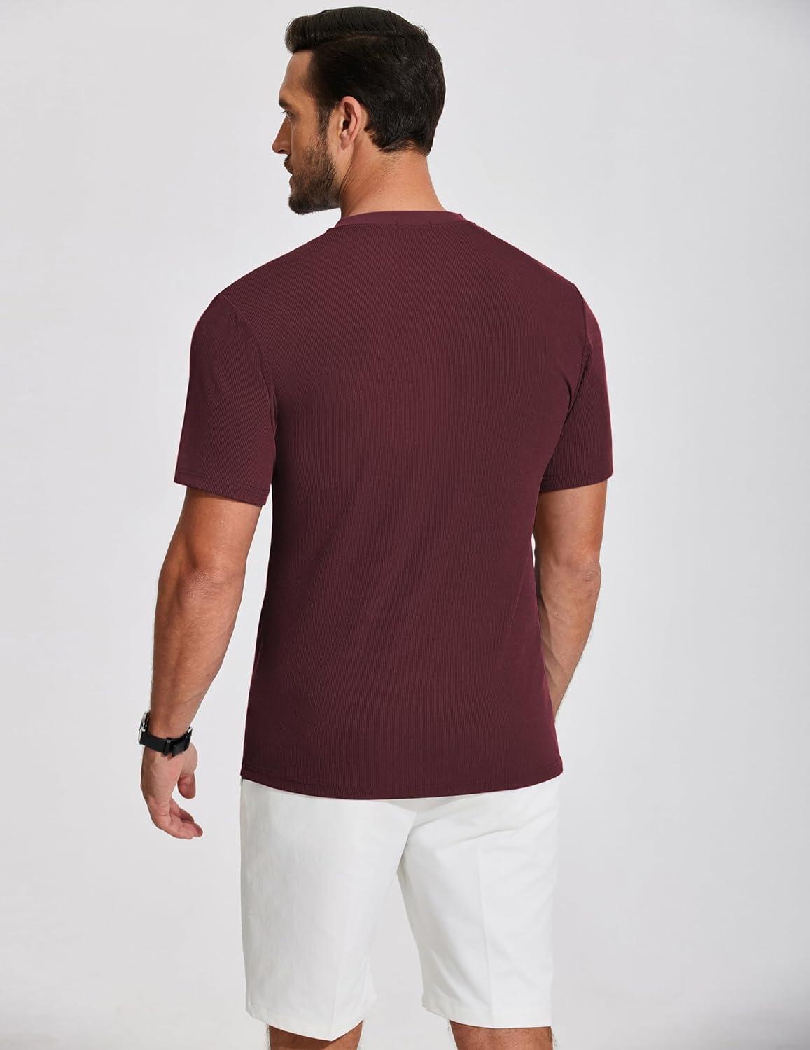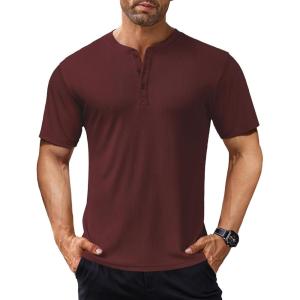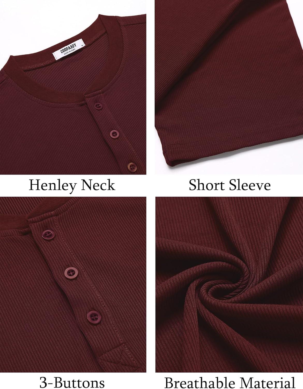 COOFANDY Men’s Henley Shirts Short Sleeve Ribbed T-Shirts Bodybuilding Workout Tee Shirts(Wine Red)