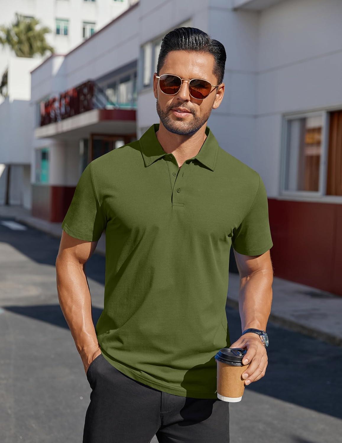 COOFANDY Men’s Polo Shirts Short Sleeve Moisture Wicking Golf Shirt Fashion Casual Collared T-Shirt(Army Green)