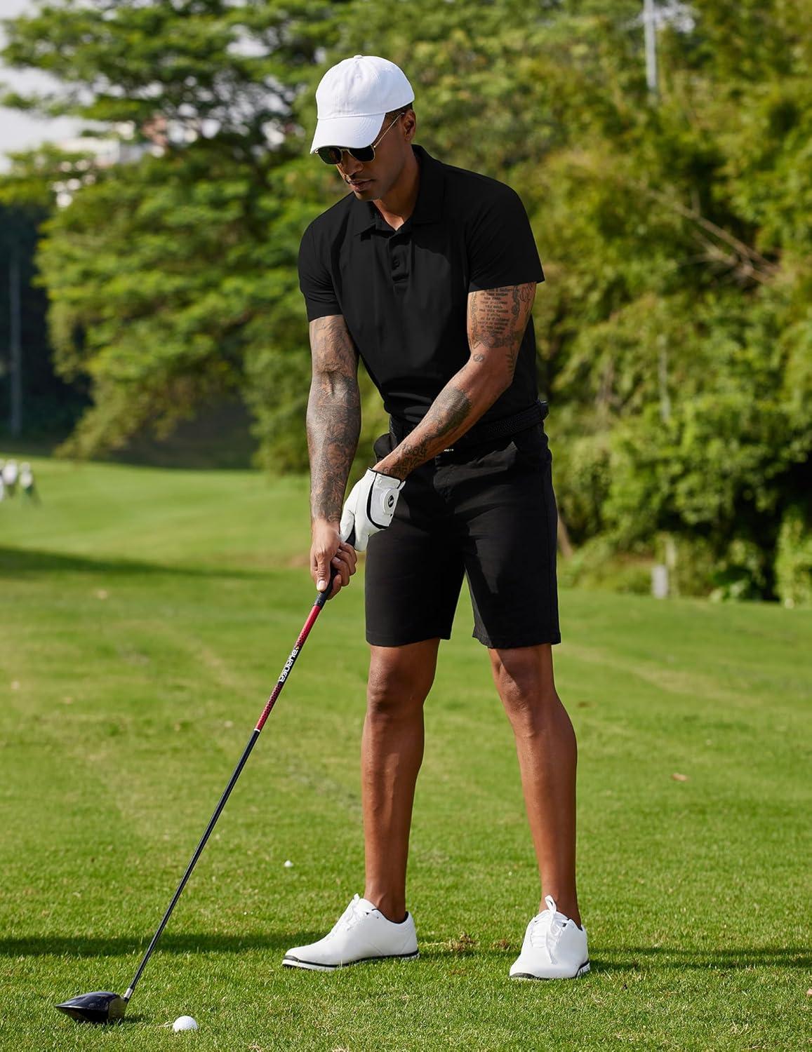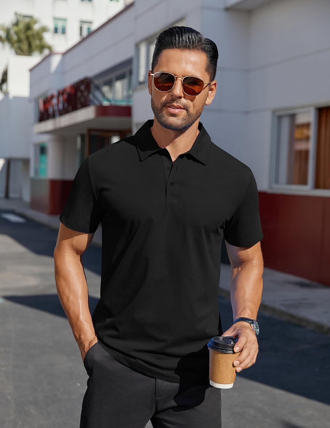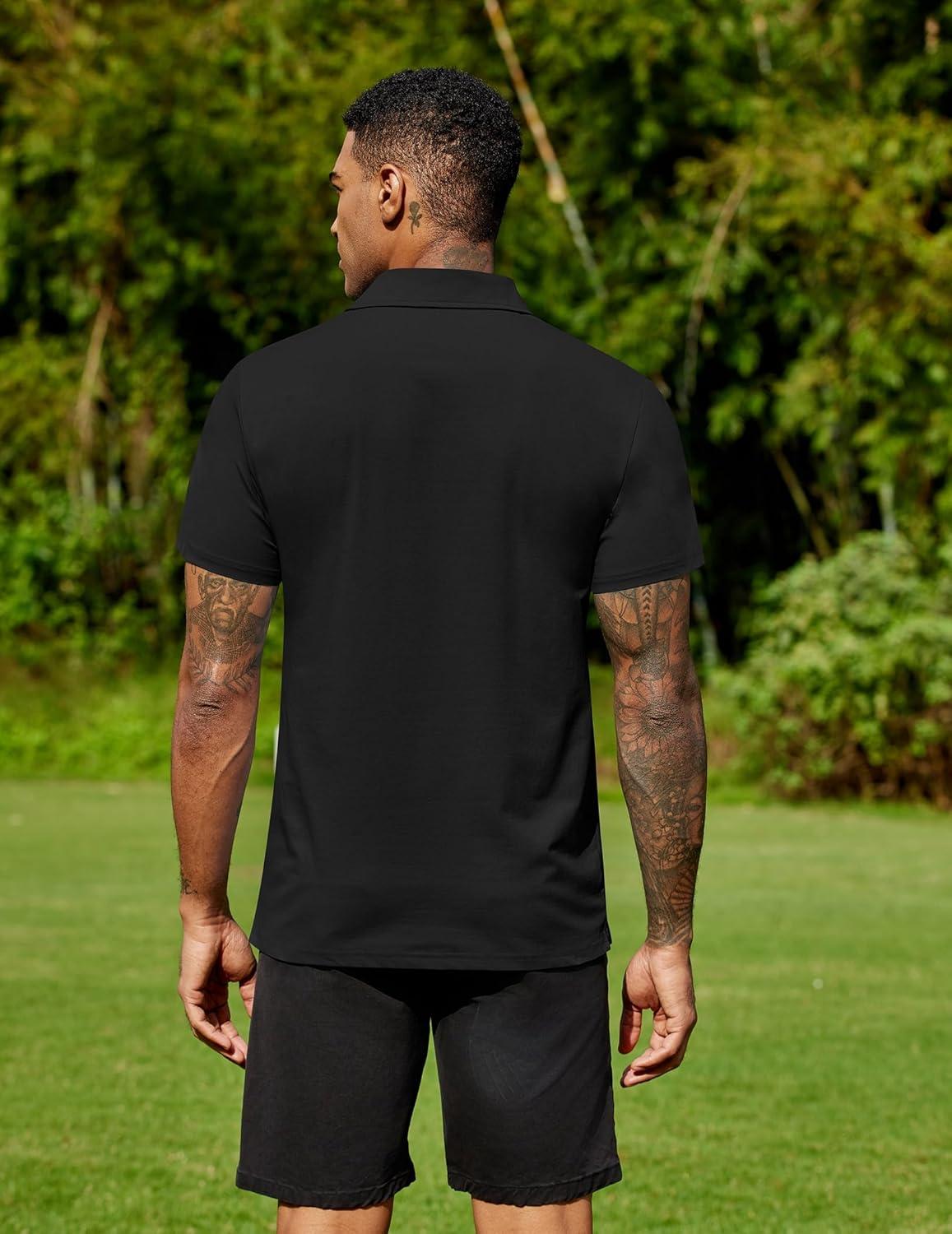 COOFANDY Men’s Polo Shirts Short Sleeve Moisture Wicking Golf Shirt Fashion Casual Collared T-Shirt(Black)