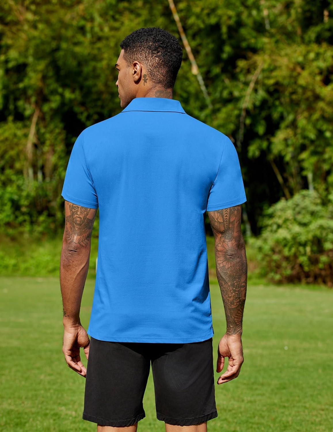 COOFANDY Men’s Polo Shirts Short Sleeve Moisture Wicking Golf Shirt Fashion Casual Collared T-Shirt(Blue)