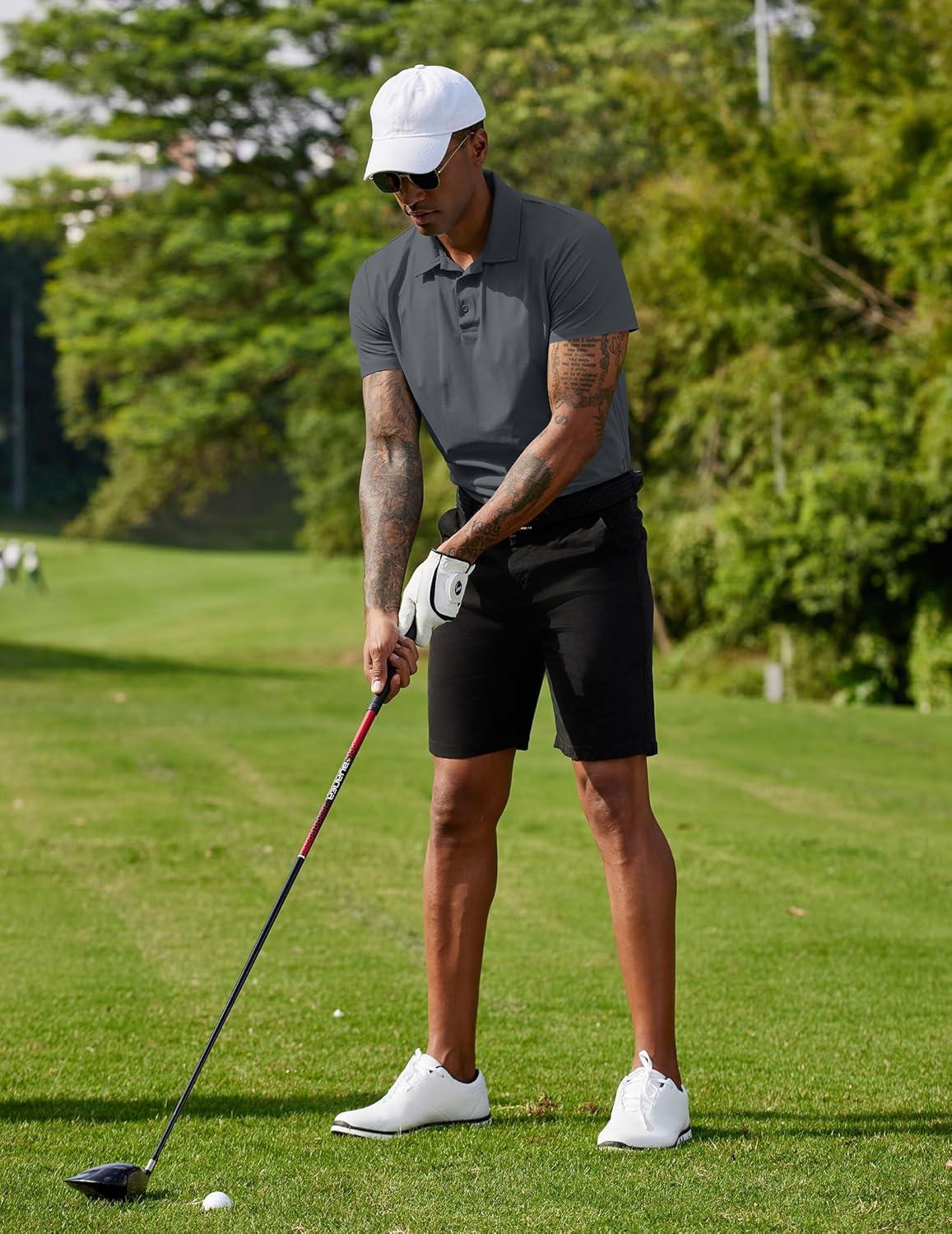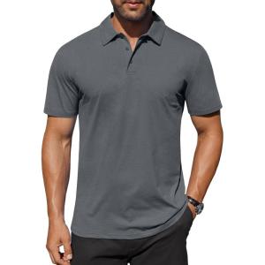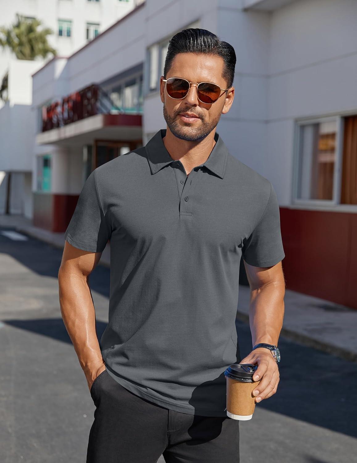 COOFANDY Men’s Polo Shirts Short Sleeve Moisture Wicking Golf Shirt Fashion Casual Collared T-Shirt(Dark Grey)