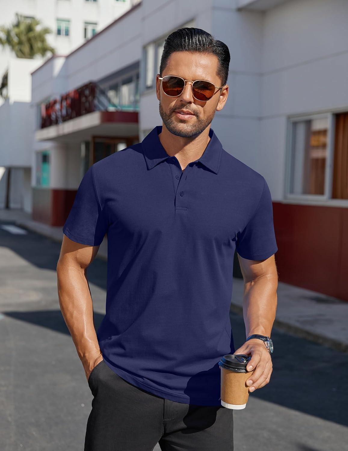 COOFANDY Men’s Polo Shirts Short Sleeve Moisture Wicking Golf Shirt Fashion Casual Collared T-Shirt(Navy Blue)