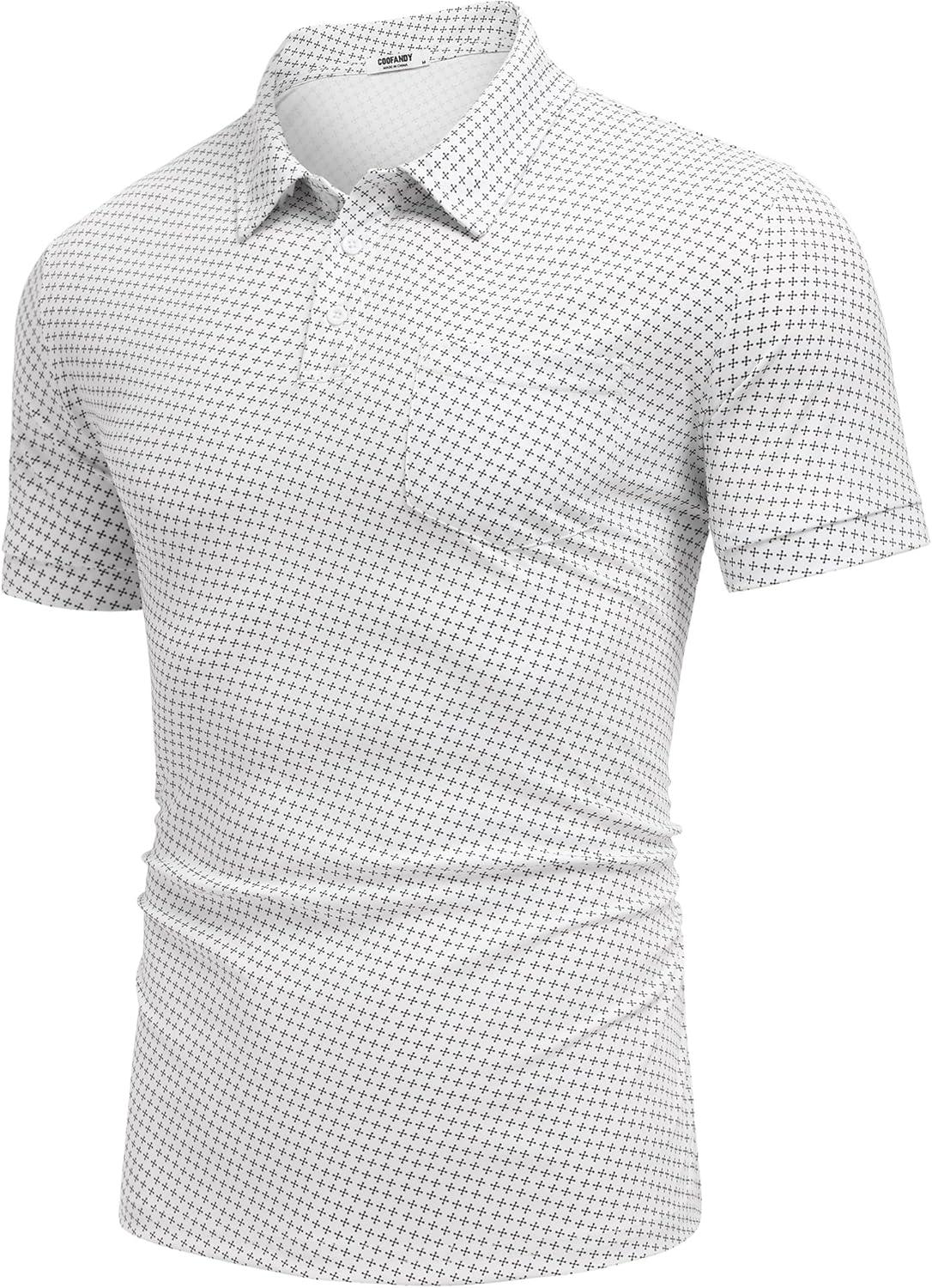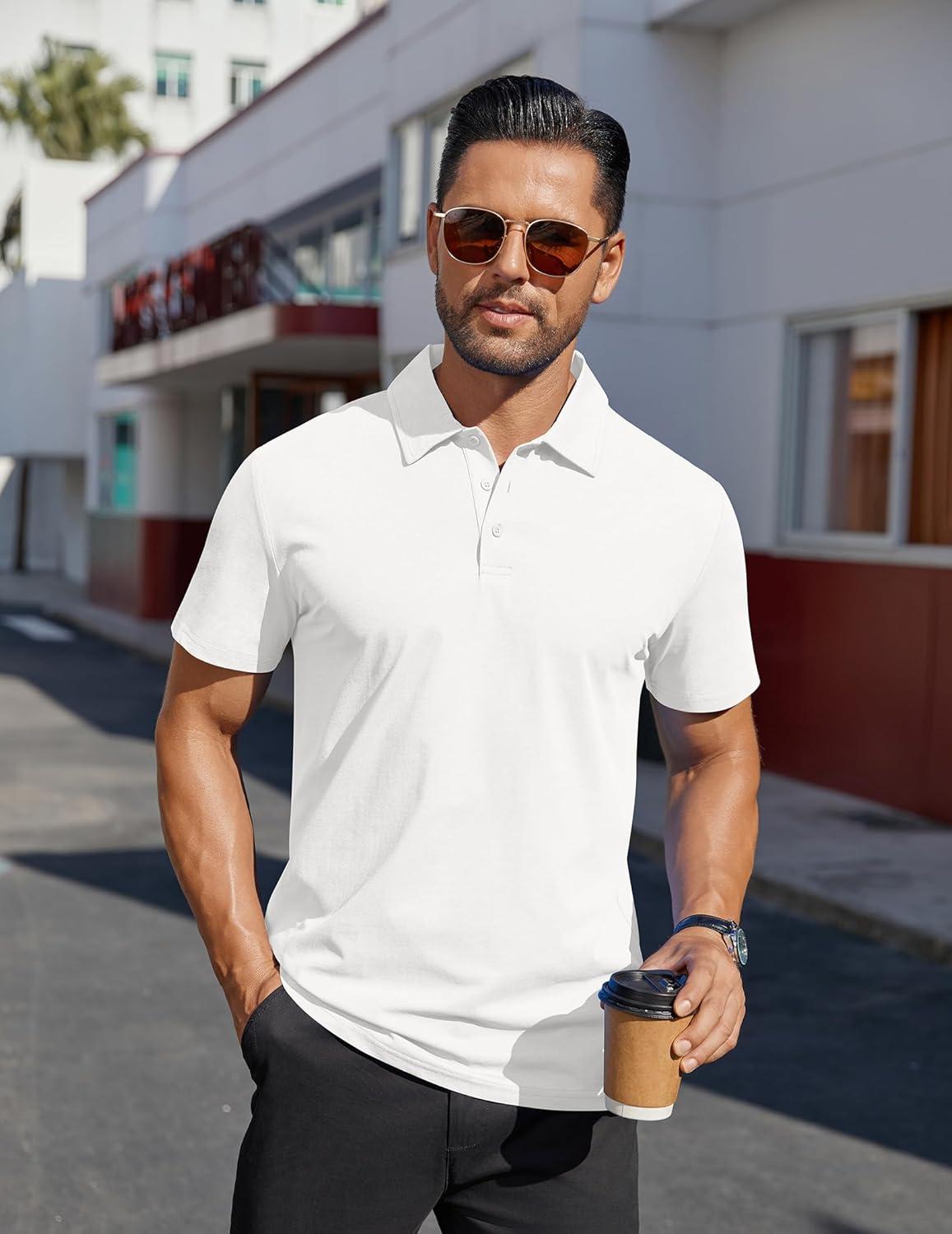 COOFANDY Men’s Polo Shirts Short Sleeve Moisture Wicking Golf Shirt Fashion Casual Collared T-Shirt(White)