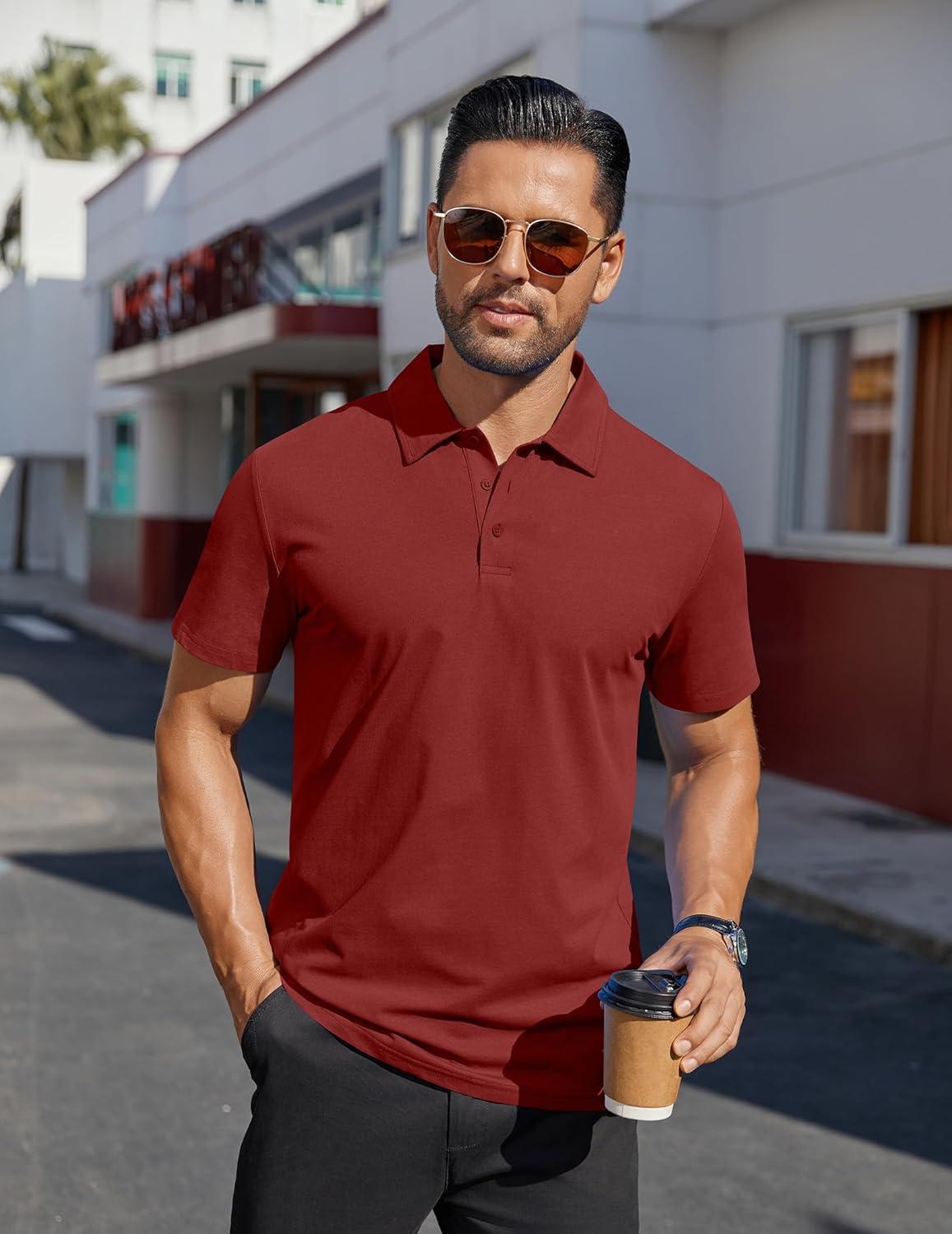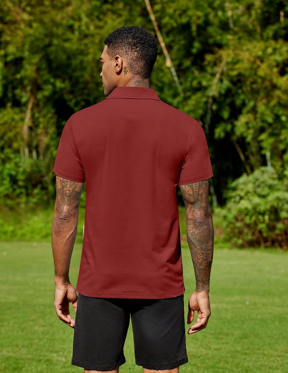 COOFANDY Men’s Polo Shirts Short Sleeve Moisture Wicking Golf Shirt Fashion Casual Collared T-Shirt(Wine Red)
