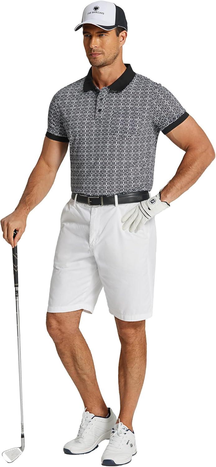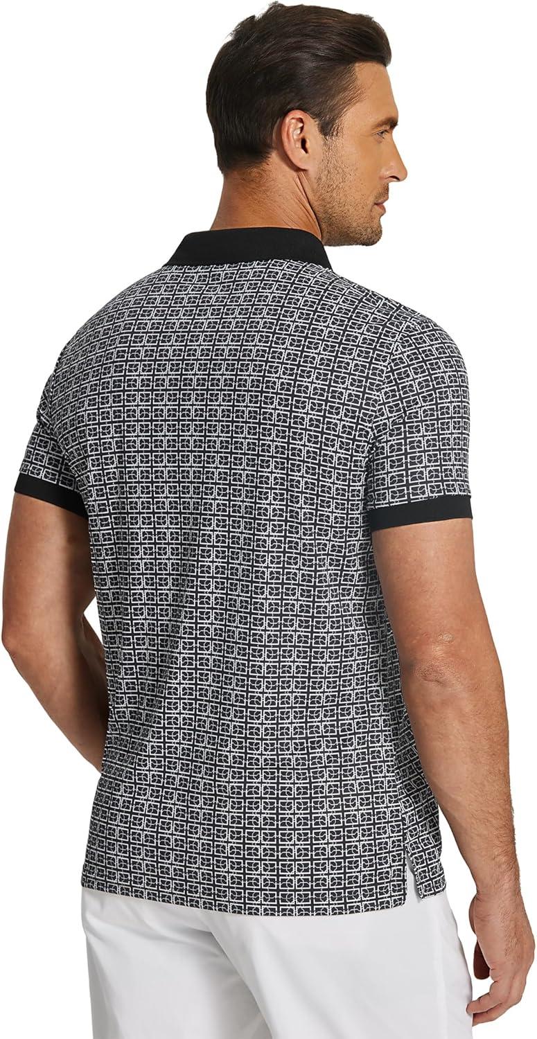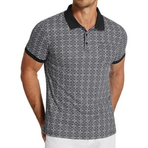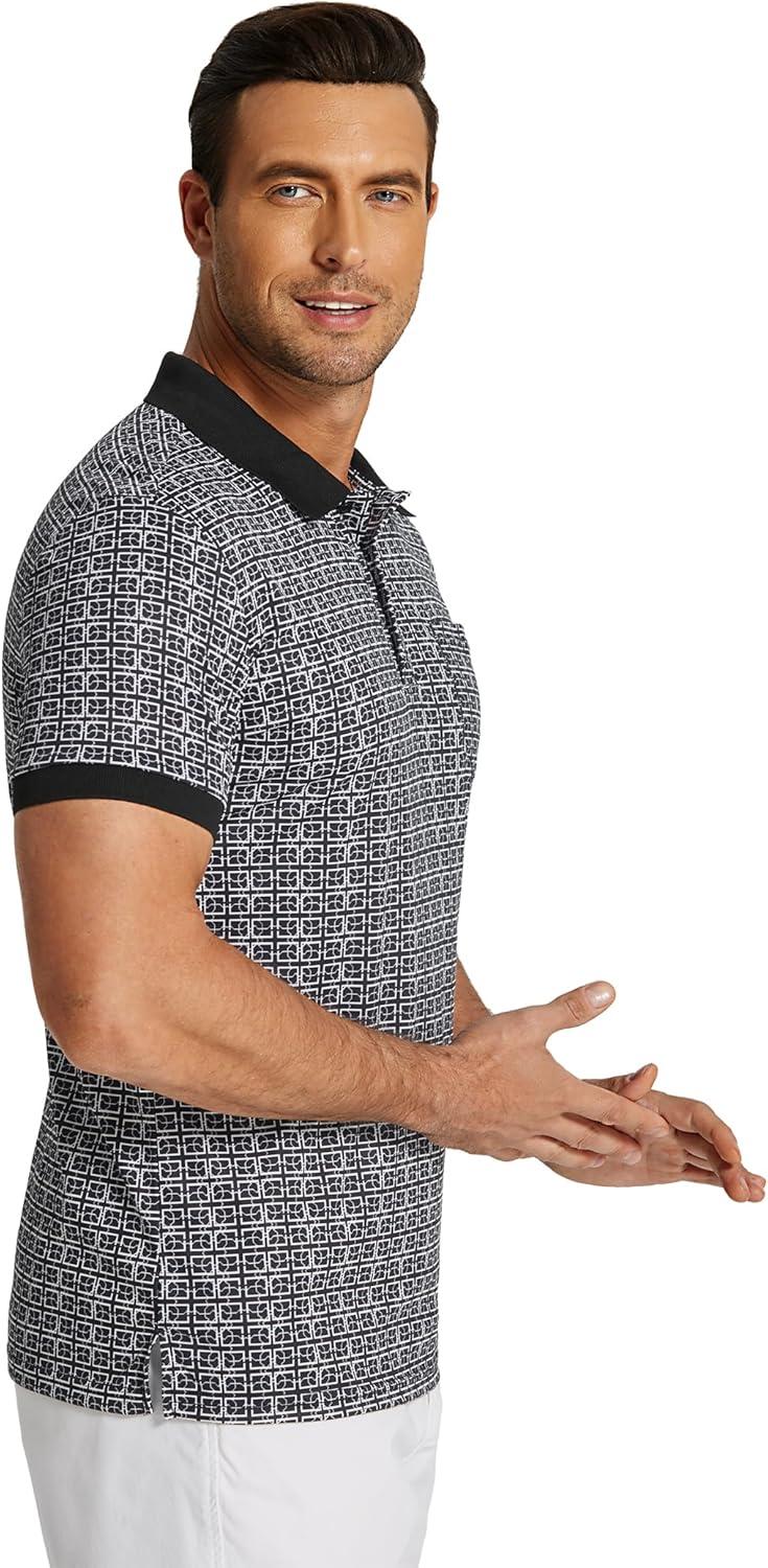 COOFANDY Men’s Polo Shirts Short Sleeve Print Performance Golf Shirts Fashion Casual Beach Collared T-Shirts(Black (Square))