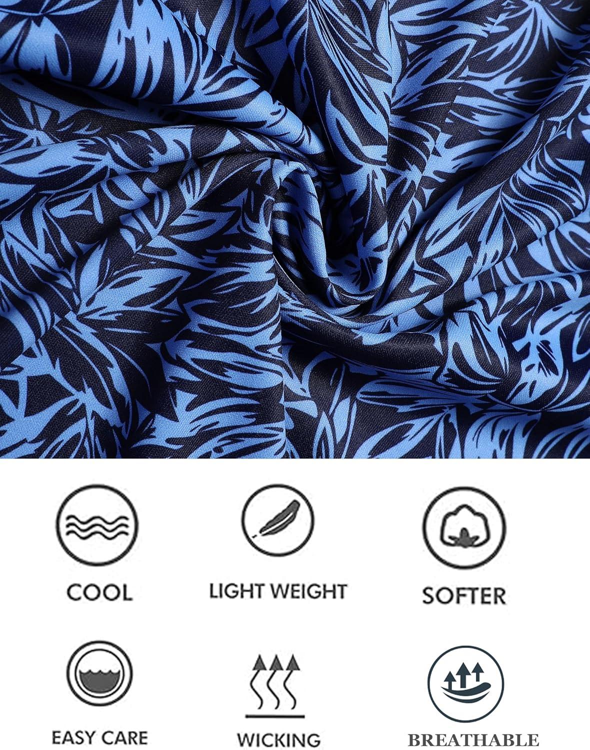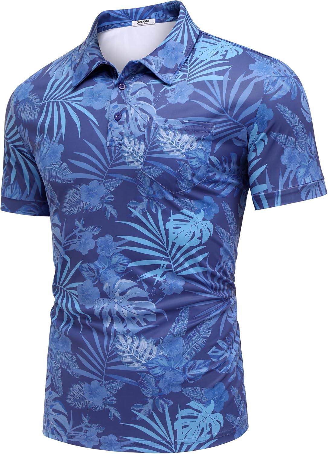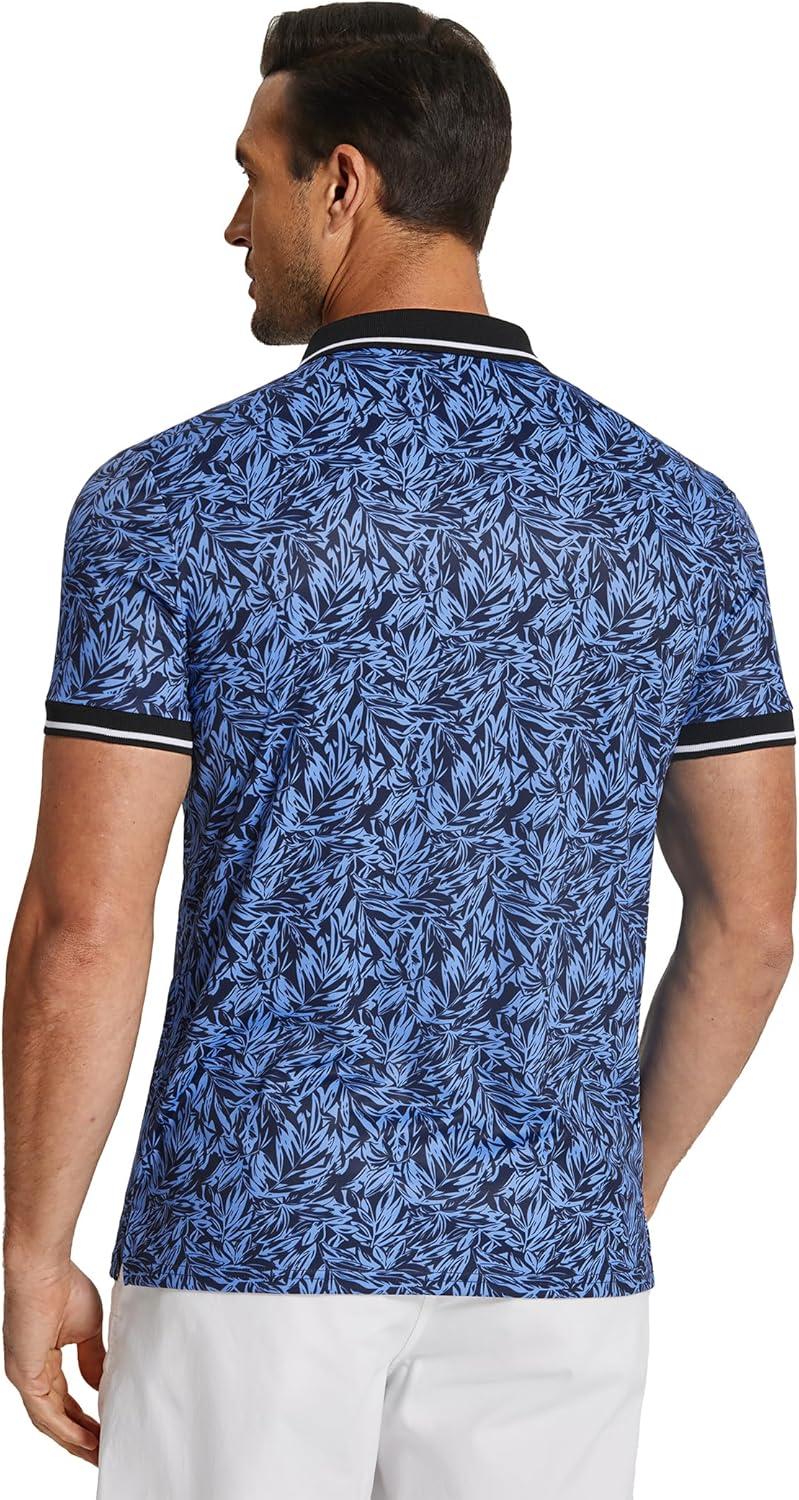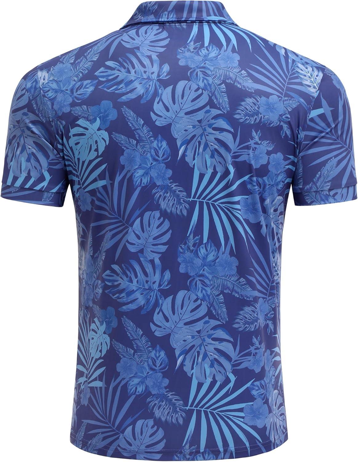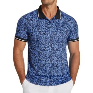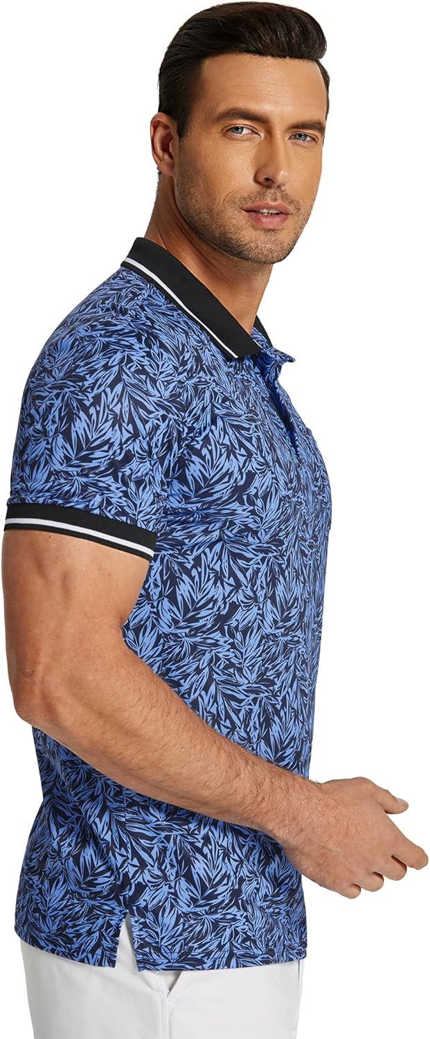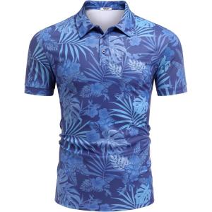 COOFANDY Men’s Polo Shirts Short Sleeve Print Performance Golf Shirts Fashion Casual Beach Collared T-Shirts(Blue Leaf)