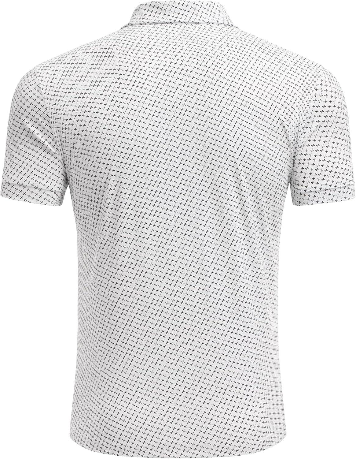 COOFANDY Men’s Polo Shirts Short Sleeve Print Performance Golf Shirts Fashion Casual Beach Collared T-Shirts(Geometric (White & Black))